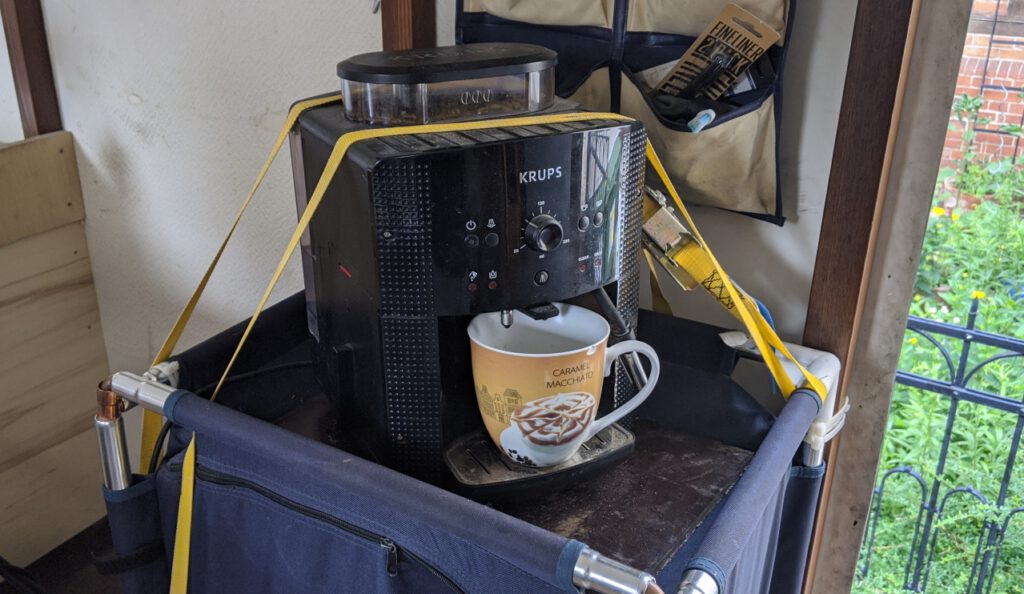 Im Grunde genommen ist es völlig sinnfrei, so einen Trümmer mit sich herumzuschleppen. Der Stromverbrauch ist 1350 Watt und im Gegensatz zu einem praktischen Espresso Kocher für den Gasherd sorgen die Plastik Kapseln für viel Müll. Die notwendigen Kapseln sind ziemlich teuer und ausserdem garantiert nur in Deutschland erhältlich.