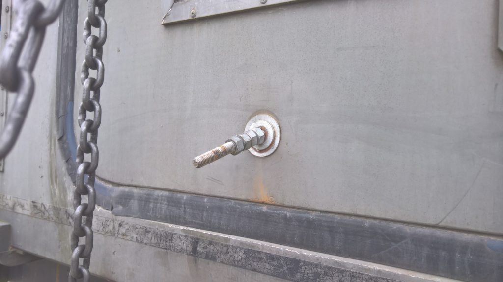 Während der Fahrt steckt das Ersatzrad auf diesem Dorn und ist mit einer Mutter gesichert.