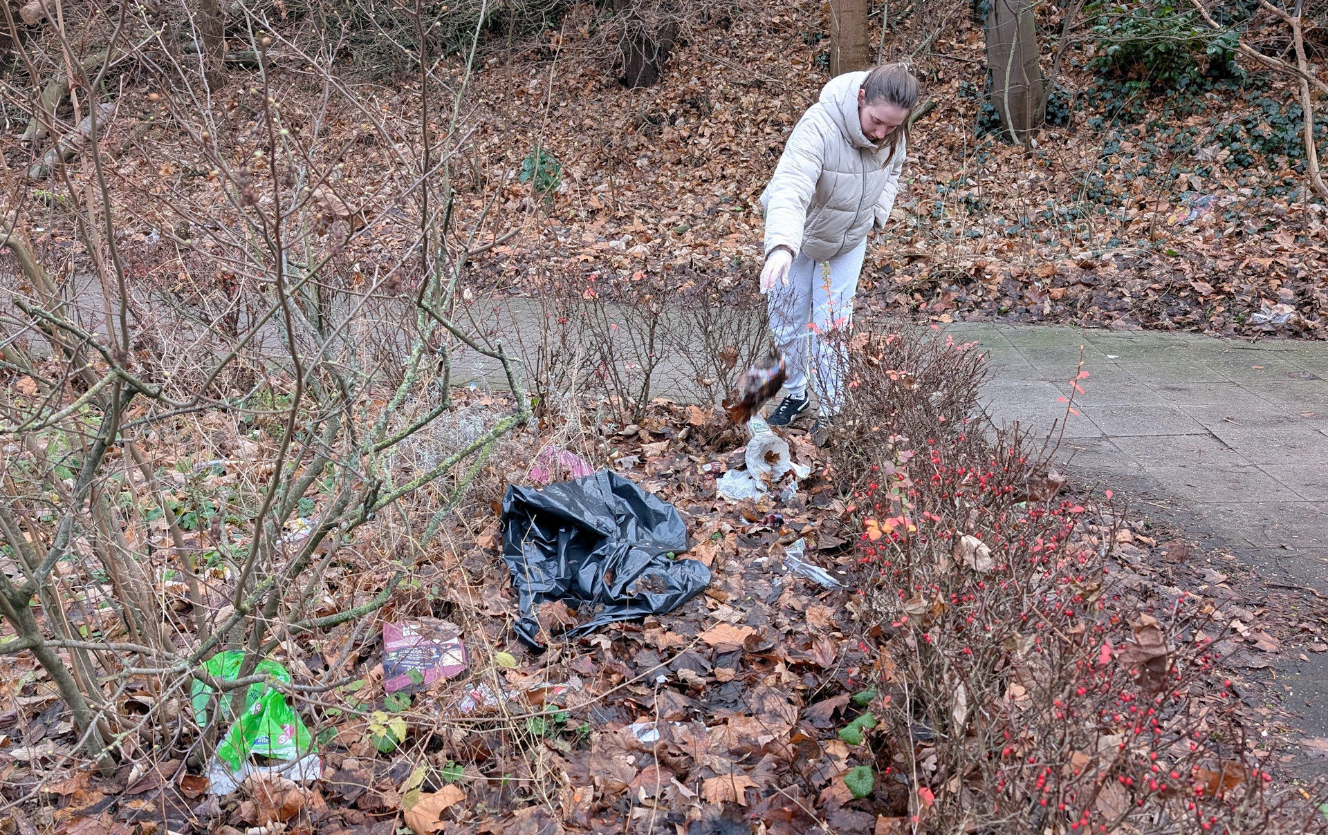 Zurück in Deutschland. Ein Sonntag in Hannover, ich geh vorm Bahnhof Kleefeld Müll sammeln. Diesmal mit tatkräftiger Unterstützung durch Mia. Erst war es ihr „peinlich“. Bis ich ihr erklärt hab dass man sich niemals schämen muss einfach das richtige zu tun.