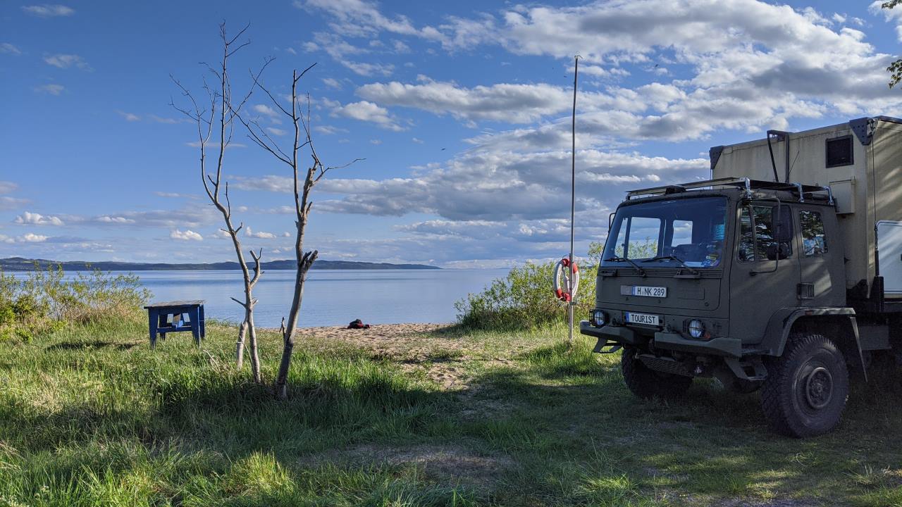19.05.2020 – mit Peer in Schweden. Cool, wenn man so ein autarkes 4×4 Zombie Apokalypse Fahrzeug hat. Corona, das findet irgendwo anders statt. Daheim drehen alle am Rad: sollen sie doch … wir sitzen am See und spielen Siedler für Zwei.