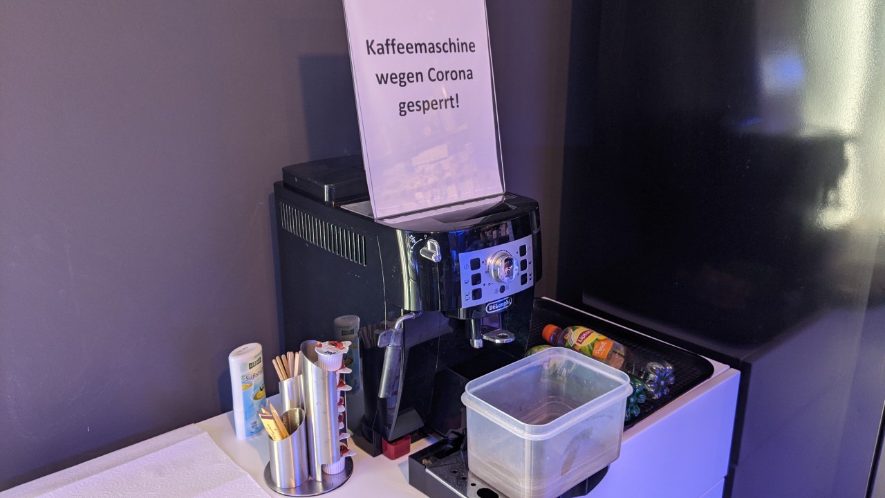 20.02.2021: Kein Kaffee mehr, wegen Corona. Eine der vielen, unsinnigen Gängelungen der Regierung. Es macht keinen Unterschied, ob man sich an einem Automaten eine Fahrkarte zieht – das ist erlaubt – oder einen Kaffee.