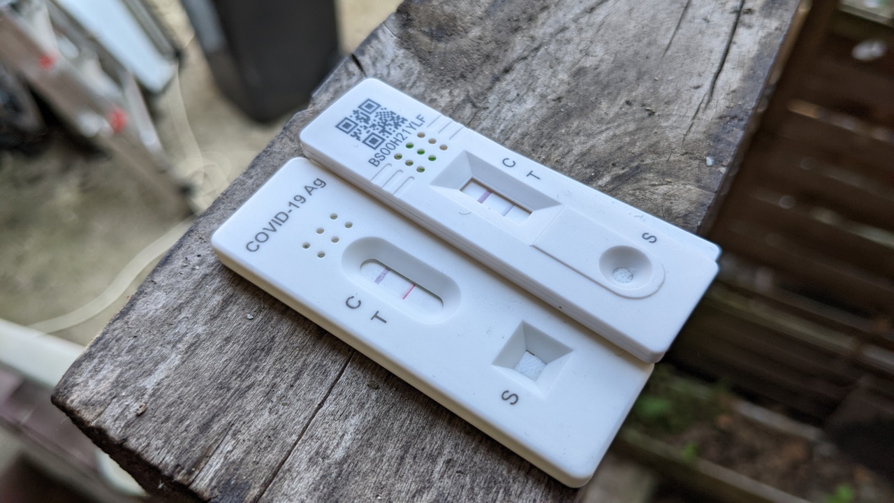 Zwei Corona Tests mit zwei Strichen. Das Ergebnis ist positiv.