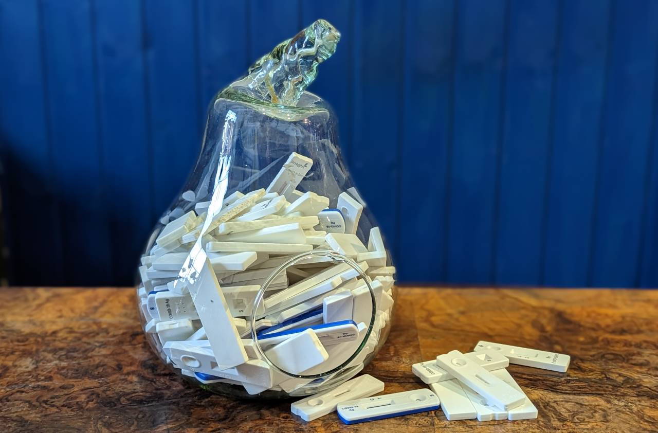 04.05.2023, Hannover: das sind die gesammelten Corona Tests von Mia & Peer. In der Schule wurde damals (damals, es ist tatsächlich damals) fast täglich getestet. Wir haben noch ein ganzes Glas voll ausnahmslos negativer Teststreifen.