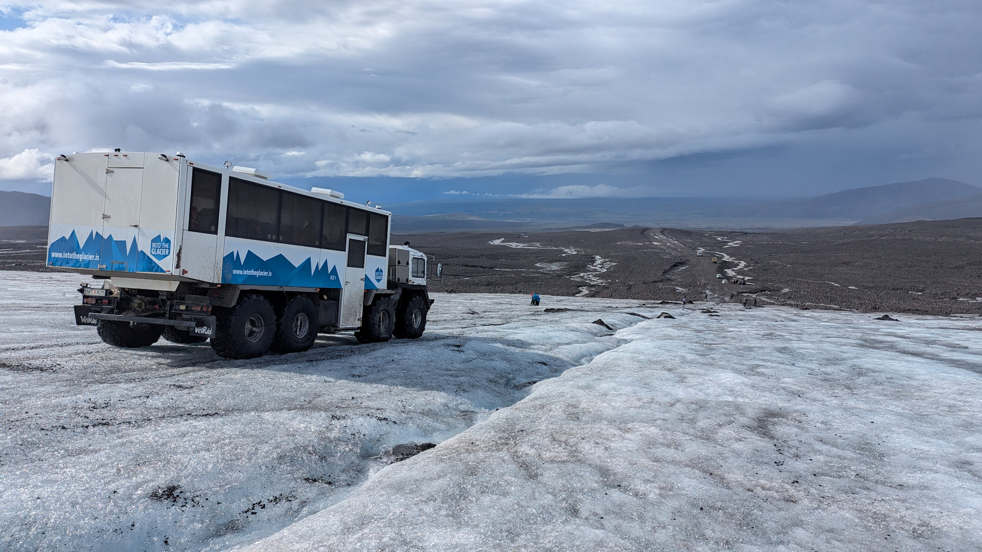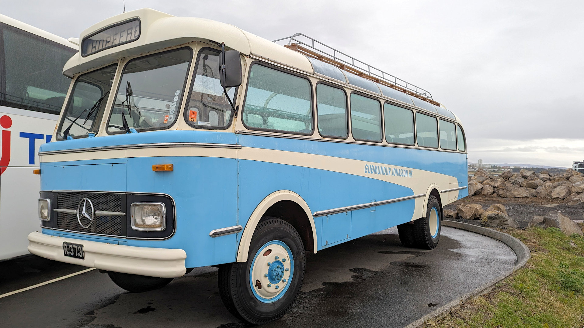 Das Foto hab ich im alten Hafen von Reykjavik gemacht, wo er (warum auch immer) leer unterwegs war. Wenige Tage später hatte das Fahrzeug – erneut – einen schweren Unfall auf der Ringstrasse. Es gab mehrerer Schwerverletzte. Aber kein Problem, die bauen den wieder auf und machen weiter. Für 2025 kann man bereits wieder buchen. Ausser kosmetischen Ermahnungen unternehmen die isländischen Behörden nichts gegen unseriöse Reiseveranstalter wie diesen.