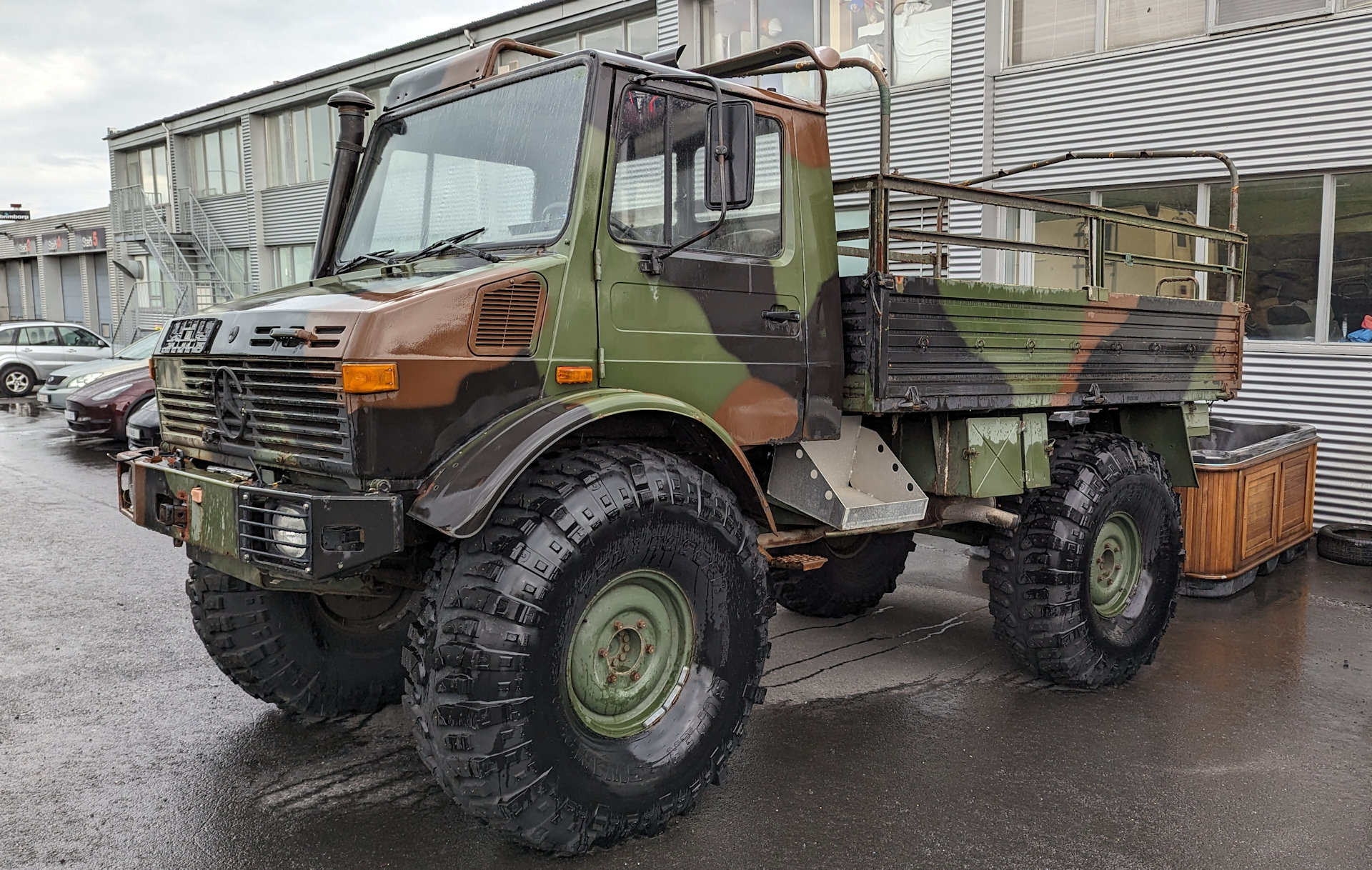 In Reykjavik entdeckt. Ein Chevrolet, dem Logo nach. Definitiv 4×4. Aber ich hab über dieses Fahrzeug absolut nichts rausbekommen. Die Hinterachse scheint nicht ganz zu passen, eventuell ist das ein Exoten Umbau oder Selbstbau. Ein Mercedes L 710 Kurzhauber. Hab extra nachgeguckt, Kurzhauber und Rundhauber verwechsle ich immer. Die verbliebene Solarzellen war mit einem Spanngurt gesichert. Dem Fahrer ist in Island ebenso wie mir eine Solarzelle im Sturm abgerissen.