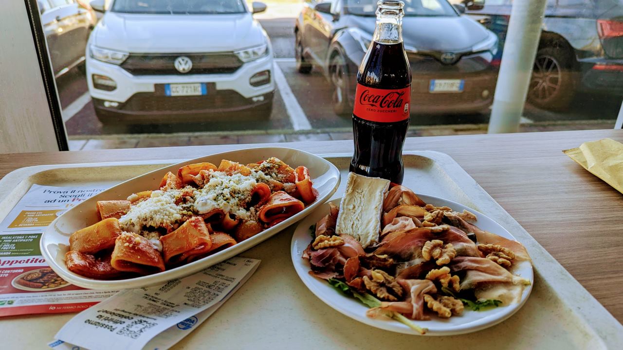 Übernachtung auf dem winterlichen Eisenberg, in Hessen. Einer meiner Lieblings Übernachtungsplätze. Einmal hab ich dort hunderte Brieftauben losfliegen sehen und der Parkplatz war auch schon mal Ziel einer Aufräum und Müllsammelaktion. Nun ein Besuch im Winter. Oben auf dem verschneiten Berg waren diesmal Kinder zum rodeln. Italien: Menü in einer Autobahnraststätte. Nudeln, die extra für mich gekocht wurden, Salat mit Schinken, Camembert & Wallnüssen, Cola zero, das alles für 16 Euro. Bei uns: Schnitzel Pommes rot weiss.Dafür sind die Maut Stationen immer etwas heftig mit dem Truck. Das war noch eine der aufgeräumteren. Bei vielen Bezahlstationen sind links und rechts vom Reifen 5cm Platz und man muss sehr genau fahren. Insgesamt ist die Autobahmaut in Italien jedoch bezahlbar. Für einen längeren, fast 300 km langen Abschnitt von Mailand nach Pisa hab ich zusammen gerechnet etwa 25 Euro bezahlt. Spaziergang durch das historische Pisa. Den Truck hatte ich ausserhalb an der Marina geparkt. Das Busticket kostet nur 2 Euro und man ist innerhalb von 20 Minuten in der Innenstadt. Zurück ging genau so gut. Man muss sich nur trauen die Busverbindung rauszufinden und einzusteigen. Entdeckung am Hafen von La Spezia. Dort haben sich Fischer ein paar kleine Hütten improvisiert. Auf Stelzen, weit draussen und nur mit dem Boot erreichbar. Für mich eine sehr romantische Vorstellung, so auf dem Meer ein kleines Zuhause zu haben. Abends am Meer … La Vita e L’Amore (das Leben und die Liebe) hat hier jemand auf die Kaimauer geschrieben. Morgen geht es nach Sardinien.