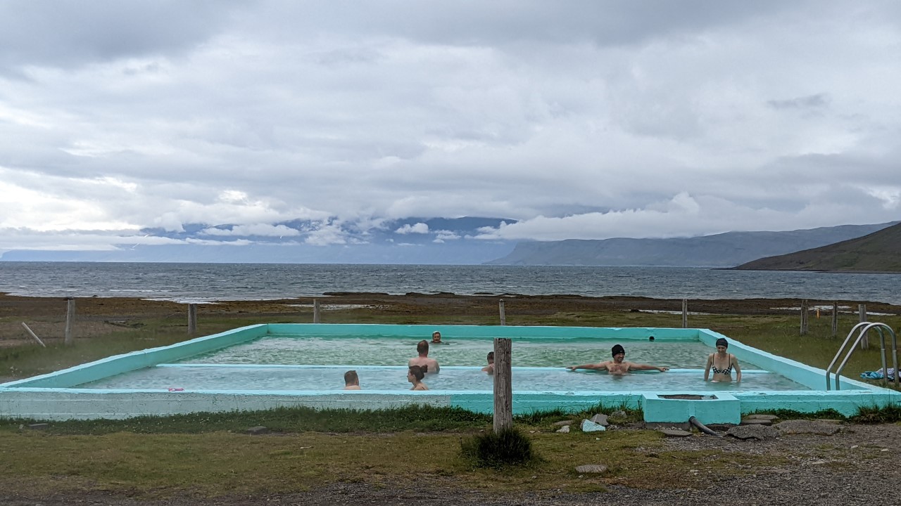 Ich bin nach wie vor in den Westfjorden unterwegs und versuche, keine Badestelle auszulassen. Gesicherte Erkentniss: je weiter man von der 60 / 61 weg ist, um so höher ist die Wahrscheinlichkeit, ein heisses Bad für sich allein zu haben.