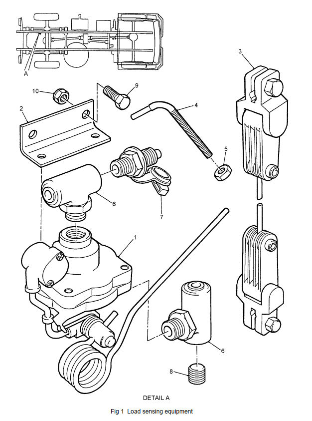 Wird das Fahrzeug stark beladen, senkt sich die Pritsche nach unten und drückt auf die Federn. Dadurch verändert sich der Winkel vom Arm und das lastabhängige Bremsventil steuert die Bremsanlage automatisch nach.