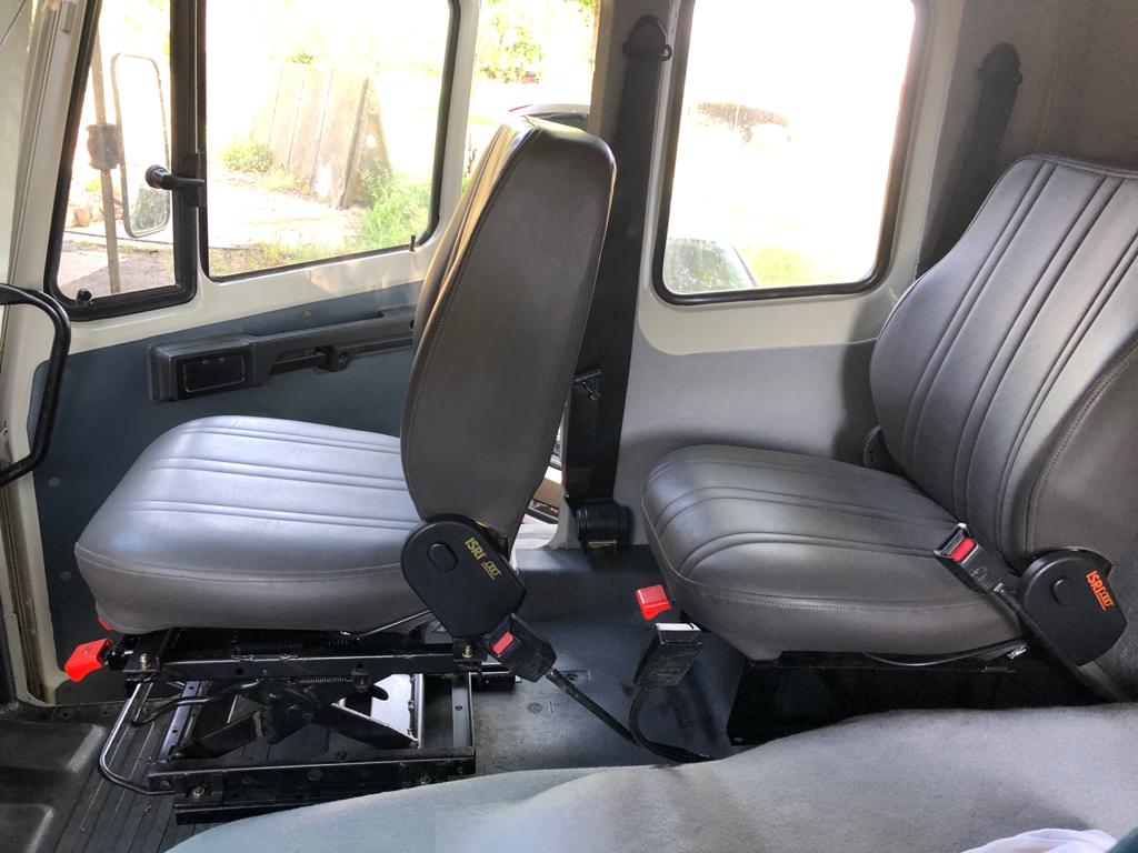 Ab Werk hat der T244 einen verstellbaren Fahrersitz, einen fixen Beifahrersitz und in der Mitte auf dem Motortunnel einen Notsitz.