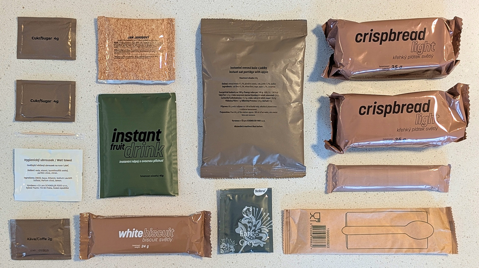 Ich hatte inzwischen die Gelegenheit, ein EPA / BPD aus Tschechien auszuprobieren. Die Soldaten in Tschechien tun mir leid. Während die bundesdeutschen EPA als durchaus schmackhaft bezeichnet werden können und die amerikanischen MRE geradezu liebevoll zusammengestellt sind müssen die Tschechen im Feld mit absolut nicht konkurrenzfähigen Notrationen auskommen. Eher Nahrungsersatz.