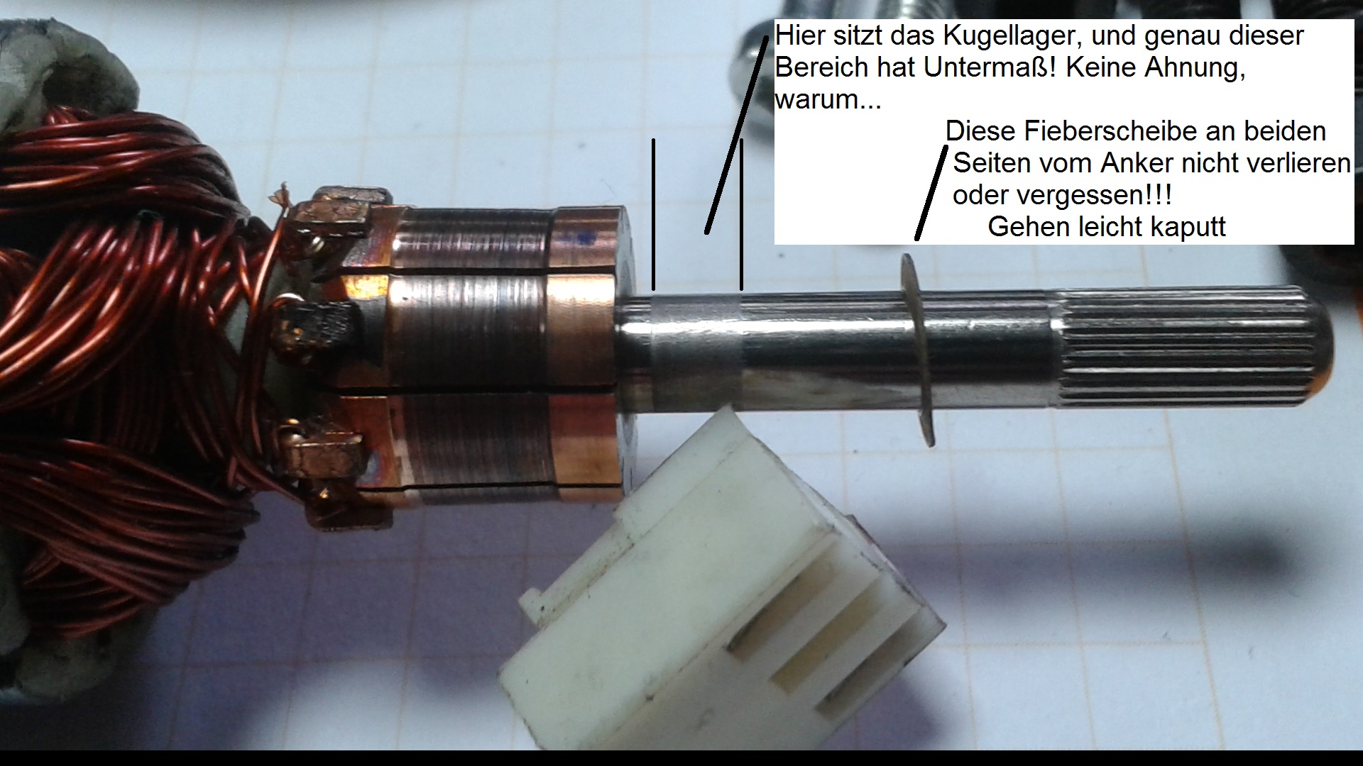 Die Ankerwelle scheint verchromt zu sein, bist auf eine Stelle, an der das Kugellager (äußeres Lüfterrad Umluft) sitzt. Warum, keine Ahnung. Unter dem Mikroskop ist zu sehen, daß die Welle kpl verchromt oder ähnlich ist, nur nicht an dieser Stelle.
