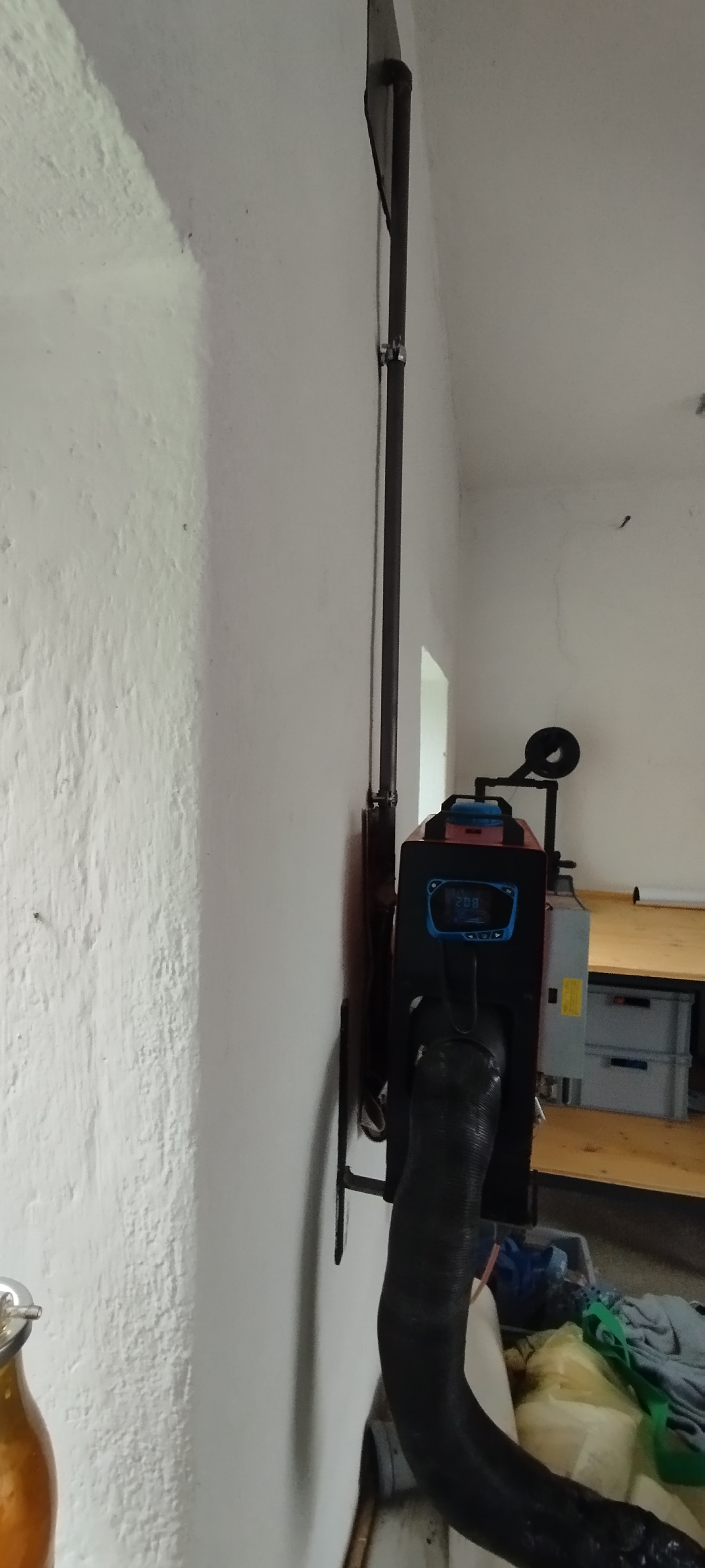 Bin Grade am testen , Abgasrohr (Edelstahl wellding) dann 1 Meter Kupferrohr aber nach unten weg und nicht steigend nach oben.