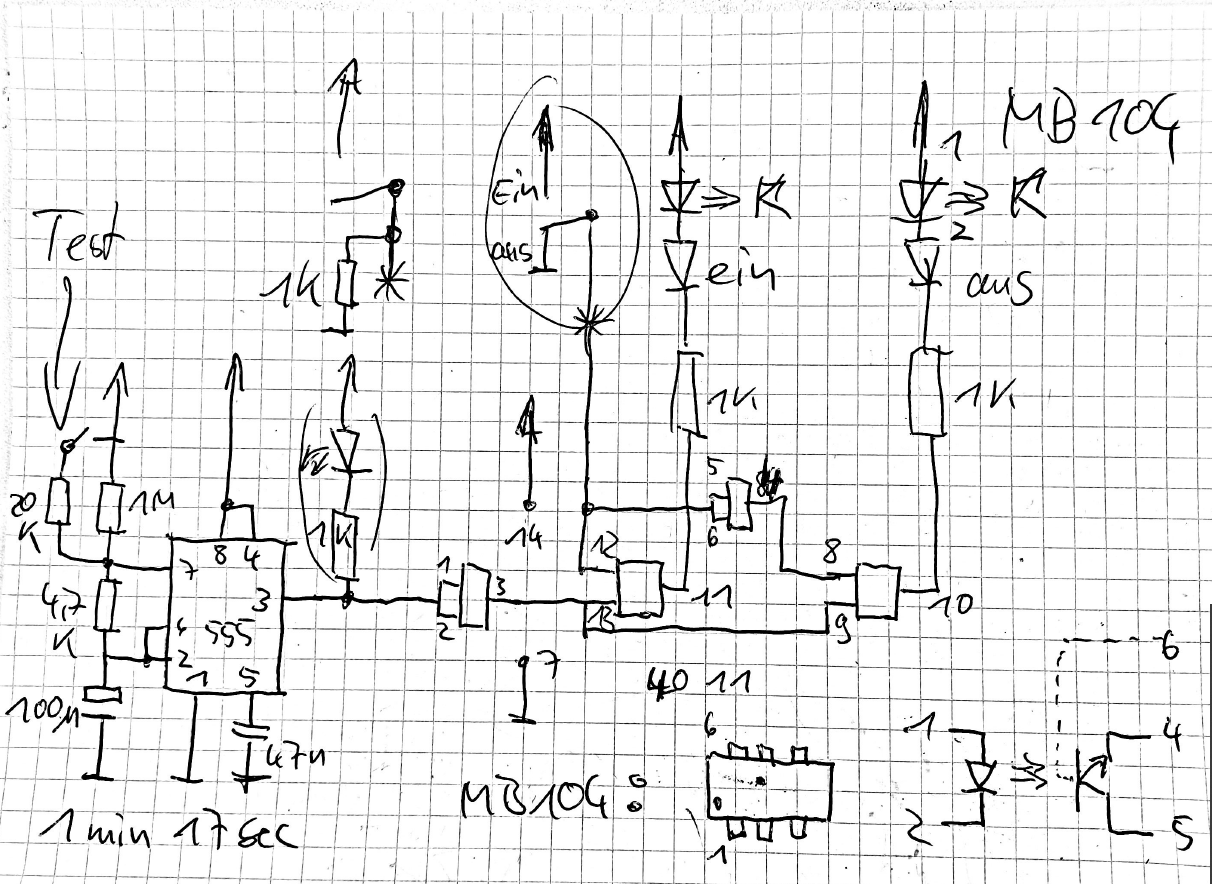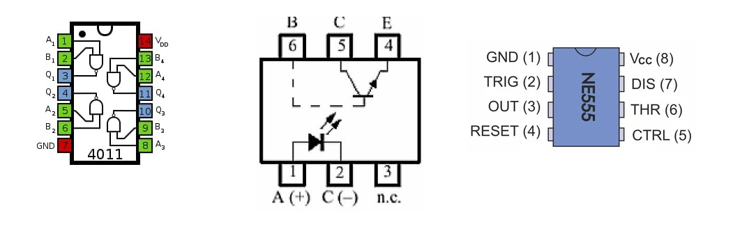 NE555 Timer, MB104 Optokoppler, 4011 - ich füg nochmal ne Belegung der Teile ein.