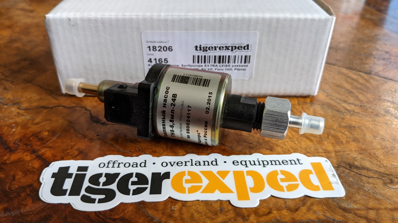 Tigerexped verkauft für ihre Planar Heizungen (heißen inzwischen Autoterm) eine Diesel Pumpe, die nicht mehr klackert. So eine hab ich mir besorgt und ich versuch gerade, die für die bekannten Chinaburner nutzbar zu machen. TigerExped nennt die Planar 44D mit 24 Volt als kompartibles Modell für die leise Pumpe, was ja ungefähr hinkommen würde ...