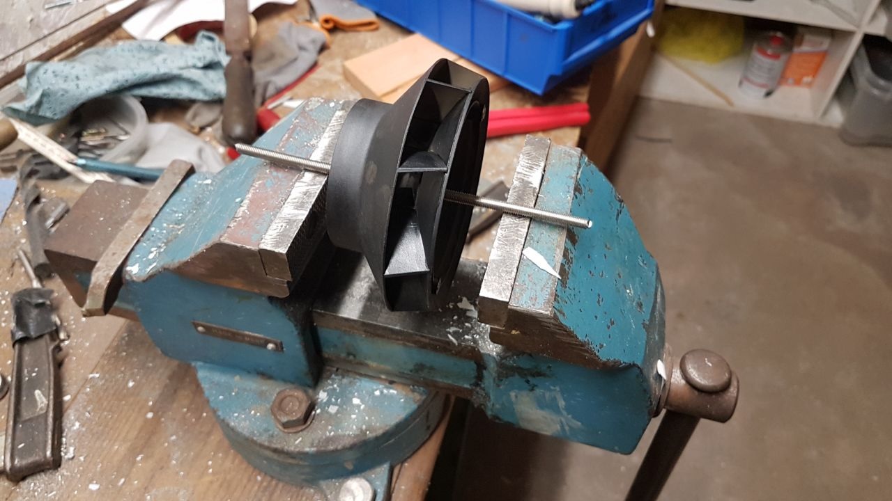 Eine M5 Gewindestange passt wirklich super durch die Bohrung des Lüfterrrads. Von daher würde ich das Lüfterrad nach der Aktion auf jeden Fall auch gleich auswuchten!
