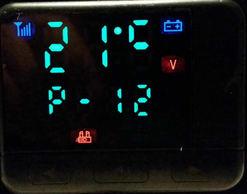ic bin auch gerade dabei die 8KW-Vevor-Heizung an den Start zu bringen. Mein Diskplay begüßt mich beim Start mit P-12 (Spannungsversorgung).