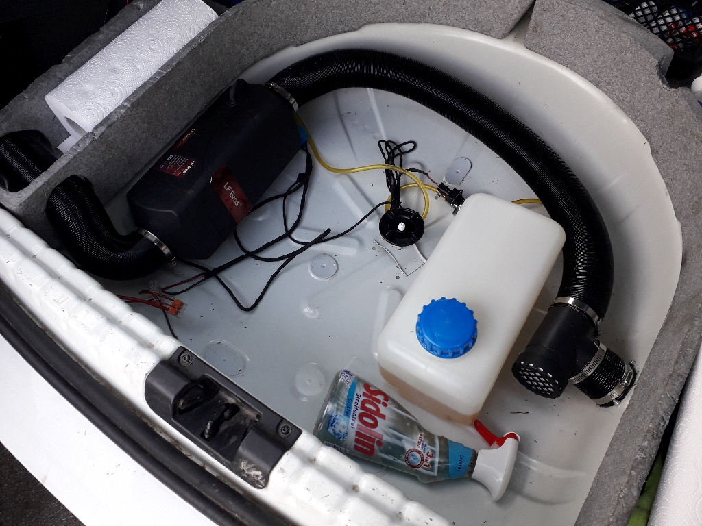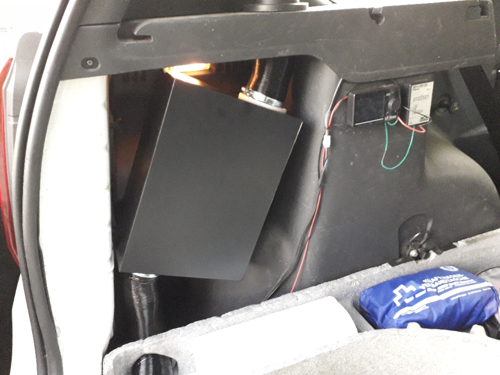 bei mir ist die kleine LF Bros 2 kw Heizung im Kofferraum verbaut. Ich hatte schon länger mit einem Luftschalldämpfer geliebäugelt, allerdings sind die mit 60 mm Anschlüssen ziemlich rar. Bei Autotherm würde es einen für 60 EUR plus Versand geben, der ist mir aber zu groß.