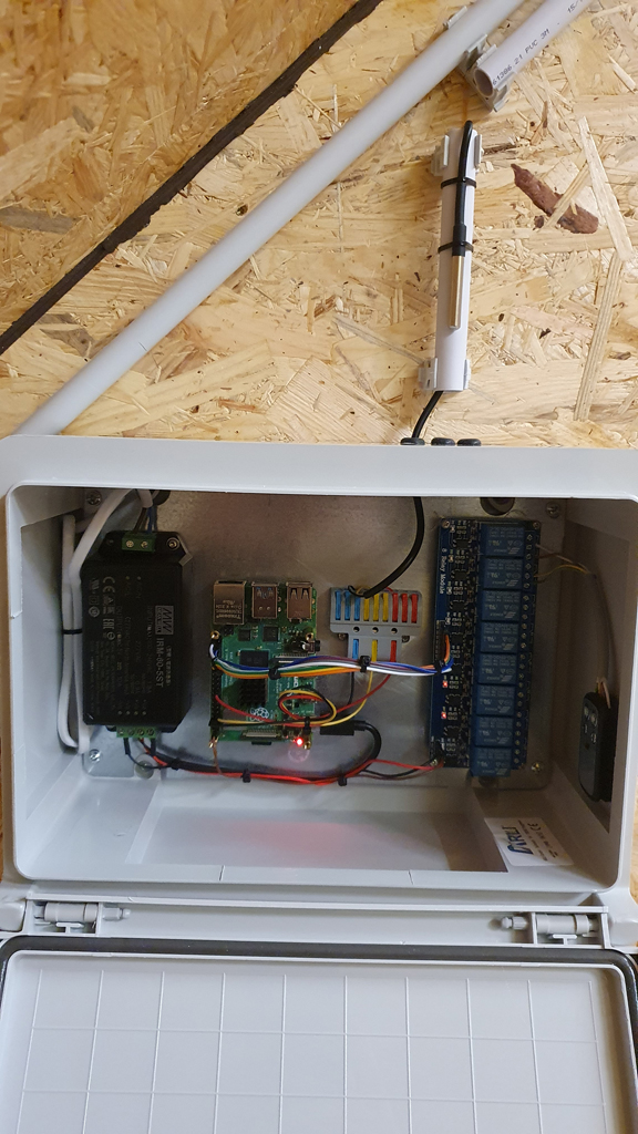 Seit vergangener Woche kann ich die Heizung mittels meiner "SmartHome", oder sagen wir eher "SmartWorkshop" Steuerung ein- und ausschalten. Hierfür kommt ein RaspberryPi mit einer Relaiskarte zum Einsatz. Dort habe ich die mitgelieferte Ferbedienung der Heizung angeschlossen. Ich hasse löten, aber es hat geklappt... Auf dem Pi kommt das System NodeRed zum Einsatz, welches sich bequem bspw. über Telegram steuern lässt.