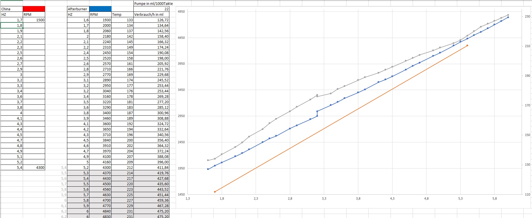 Ich hatte mal ne Tabelle mit Diagramm gemacht - HZ - Drehzahl - Temp - Verbrauch....häng ich mal mit dran.