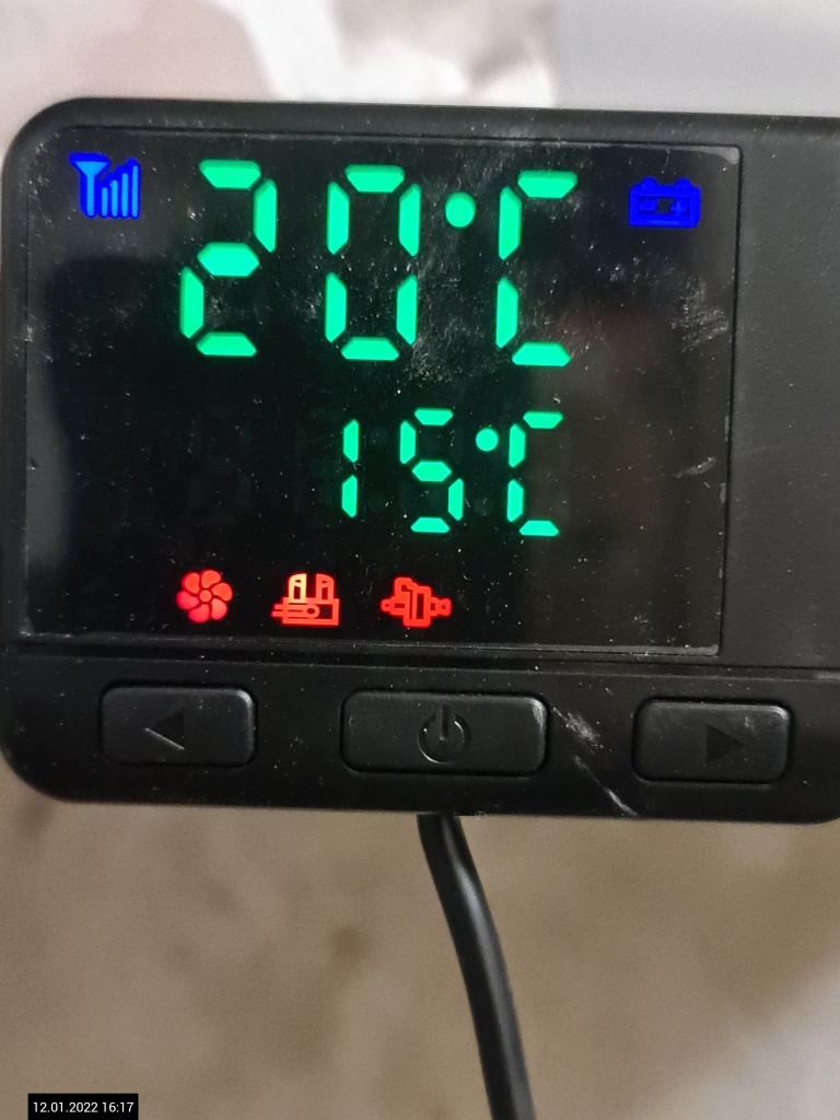 Ich hab mir ja die 8KW von Vevor in einer Kiste gekauft und da war das blaue Display dran. Hat mir nicht zugesagt und somit habe ich jetzt das mit den 3 Bedienknöpfen. Da ist mir aufgefallen, dass die Anzeige nun die Brennertemperatur anzeigt. Im "alten" Display wurde ja immer die Ist/Soll Temp.