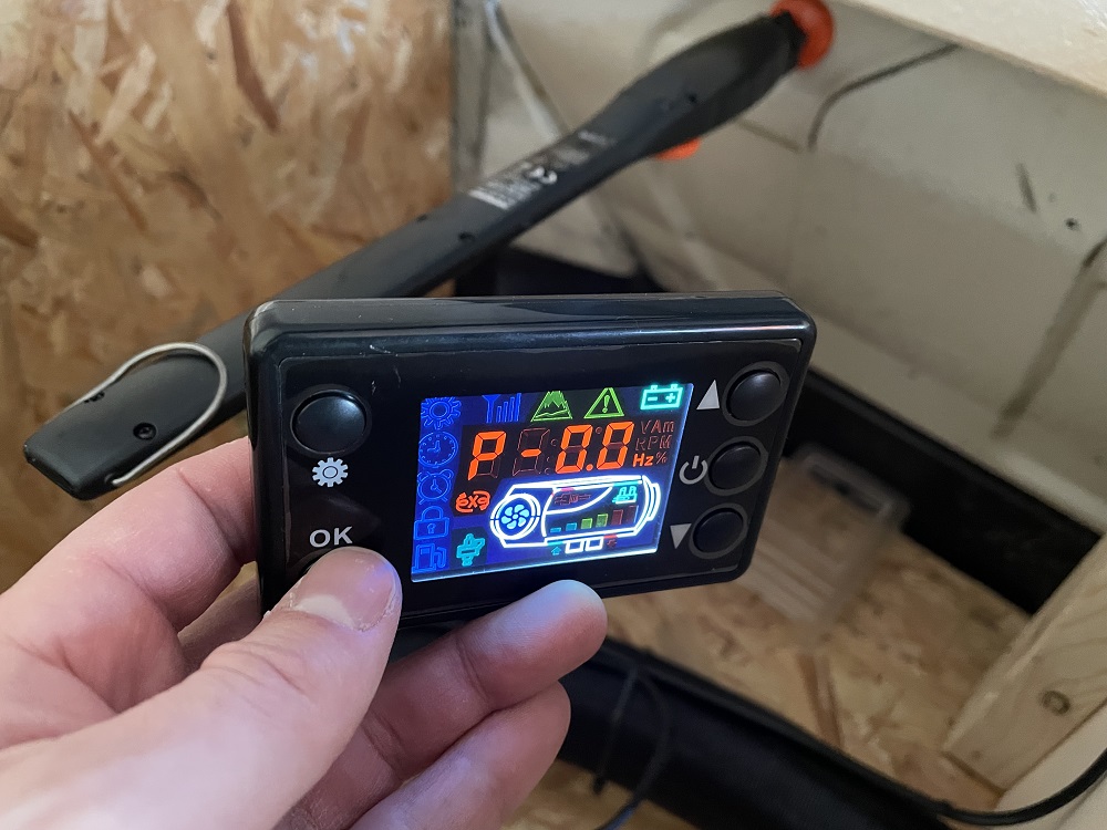 Das Problem von Beginn an war, dass ich das Bedienteil (am Foto links mit flachem Stecker) nur eingeschränkt nutzen konnte. Lediglich die Pump-Frequenz war justierbar. Aber man hängt im Zahnrad-Menü fest. Die Heizung läuft und heizt aber.