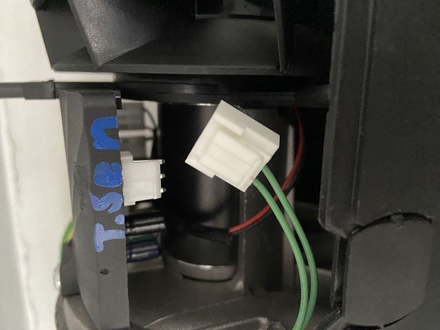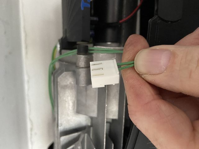 Bei dem grünen musst du mal gucken, ob er zum Thermosensor geht (Widerstand, kann ebenfalls vertauscht werden) oder ob das für den Ventilator ist. Der hat als einziges plus und minus.