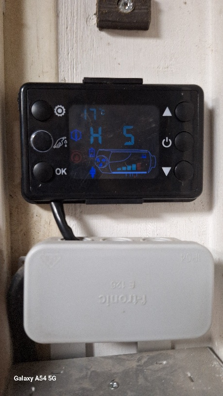 Das Display ist so wie du es abgebildet hast. Alle Versuche, in irgendein Setup- Menü zu kommen, sind gescheitert, das Ding läuft auch nicht mit einem anderen Steuergeräten, aber die Heizleistung steht dem der "getunten" alten Version in nichts nach. Real ist eine Wärmeleistung von ca. 3,6 KW.