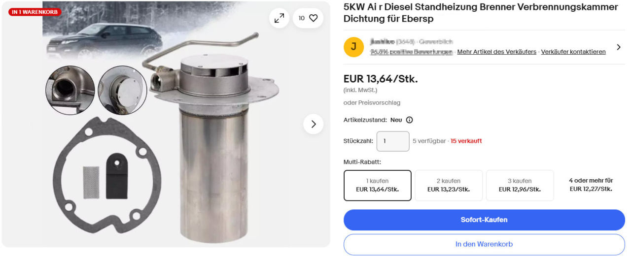 Hab gerade mal geschaut, was der Brenner kostet. Da sind die Besitzer von so einer China Diesel Heizung ziemlich gut aufgestellt, unter 15€ ! Ich probier nebenbei gesagt gerade eine neue Funktion zum hochladen + direkt einfügen von Bildern aus ...