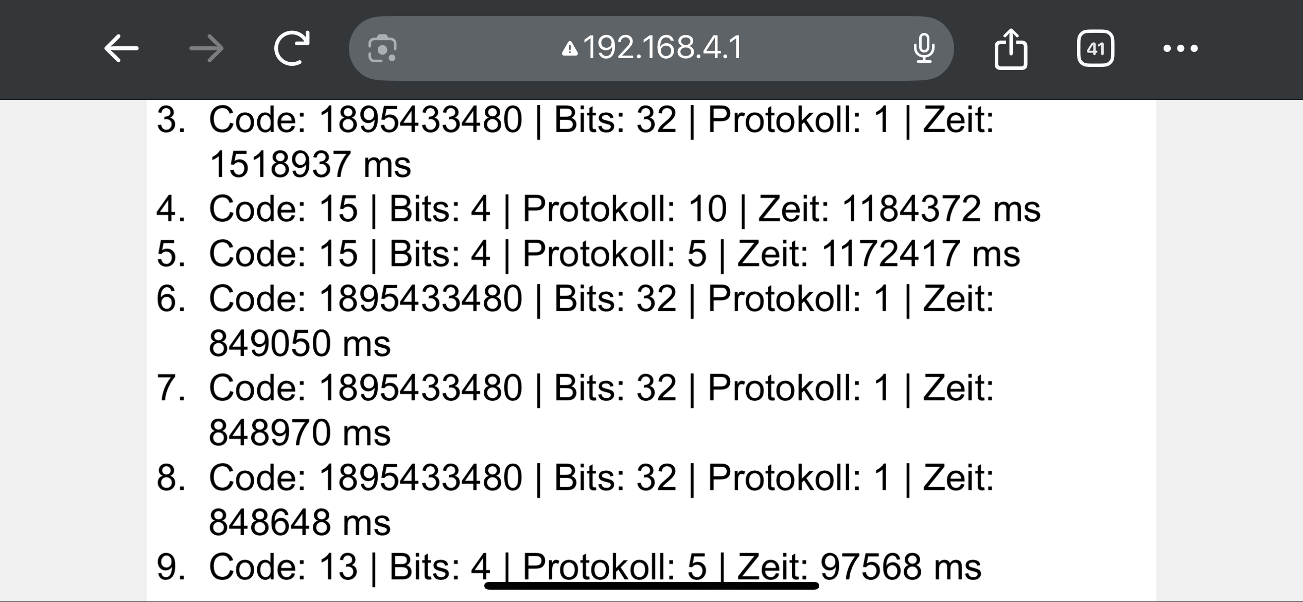 Zitat von Kai.B am 19. November 2025, 20:41 UhrInteressant finde ich wie der Code aufgebaut ist.So wie ich gesehen habe ict es ein 32bit Signal die ersten 24 Bit sind gleich und die letzten 8 Bit die Funktion .