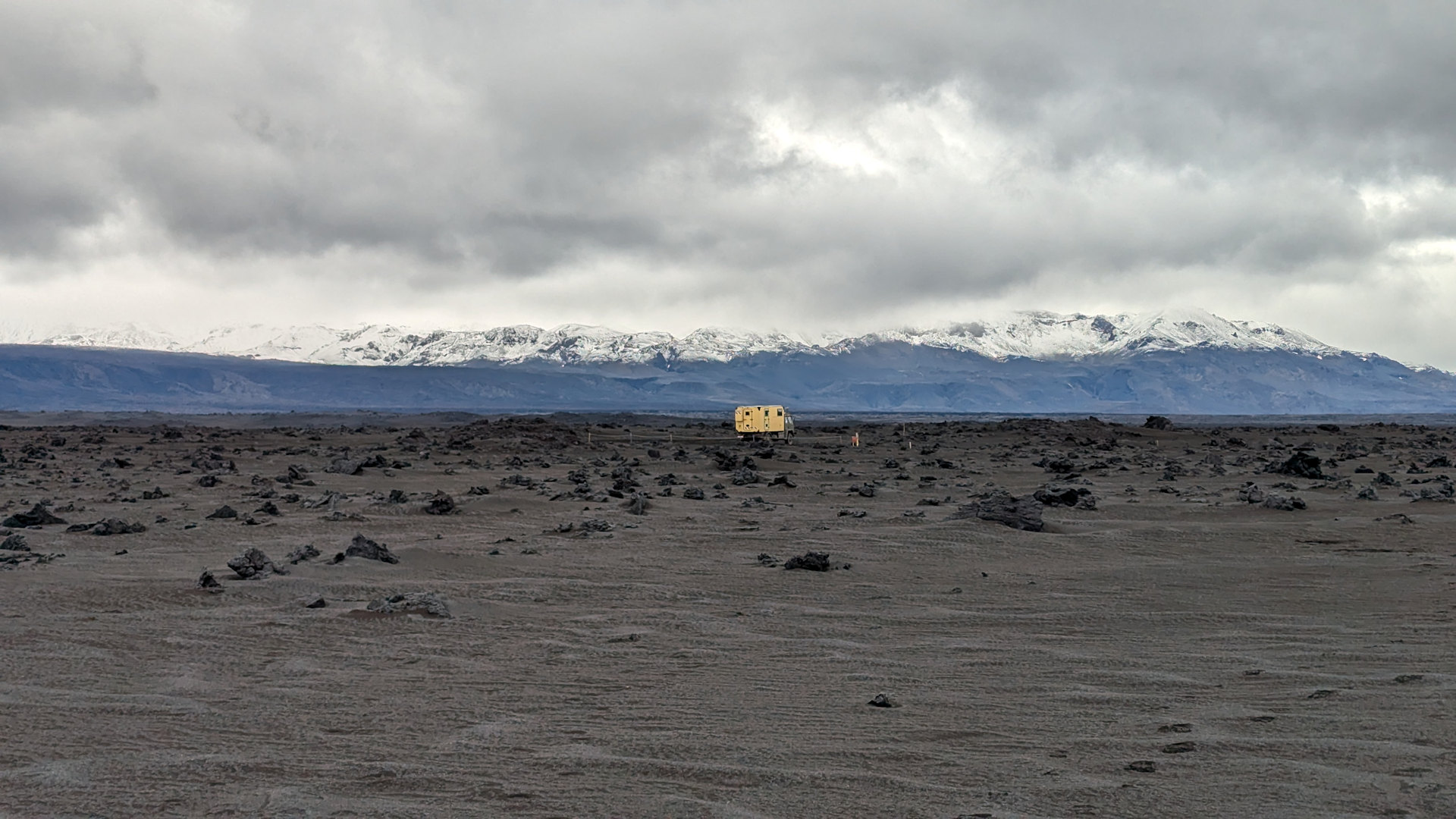 Meine Befürchtung war jedoch, dass die Wolken nochmal richtig kräftig nachlegen und dicke Flocken aufs isländische Hochland schneien lassen. Plus Schneeverwehungen. Mir war nicht daran gelegen herauszufinden ob es nochmal taut oder schlimmer wird. Ich hab daher morgens um 7:00h ohne Frühstück den Motor gestartet um zu sehen, dass ich da rauskomme.