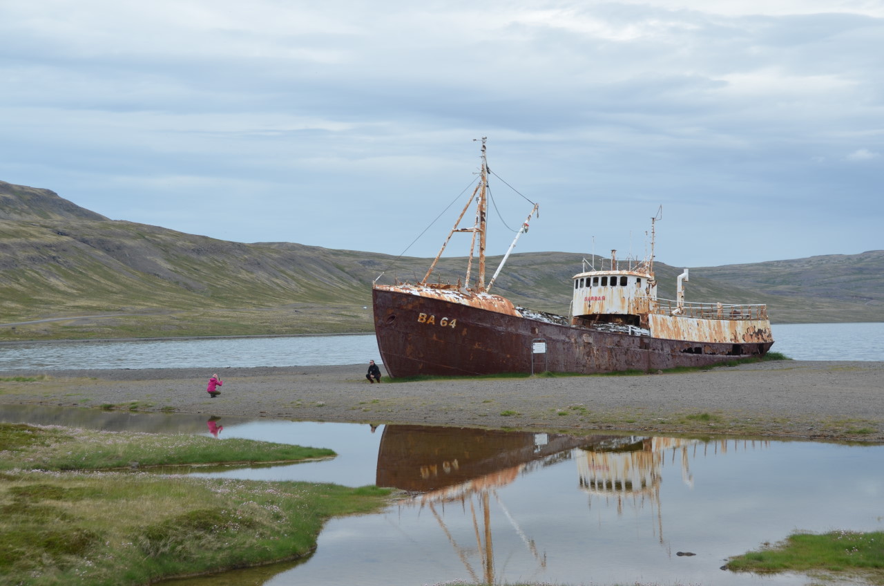 Fliegt nie wieder irgendwo hin … Aber manches wird auch zur Kunst, wie dieses absichtlich gestrandete Fischerei Schiff. Die BA64 ist das vermutlich am meisten fotografierte Schiffswrack in Island.