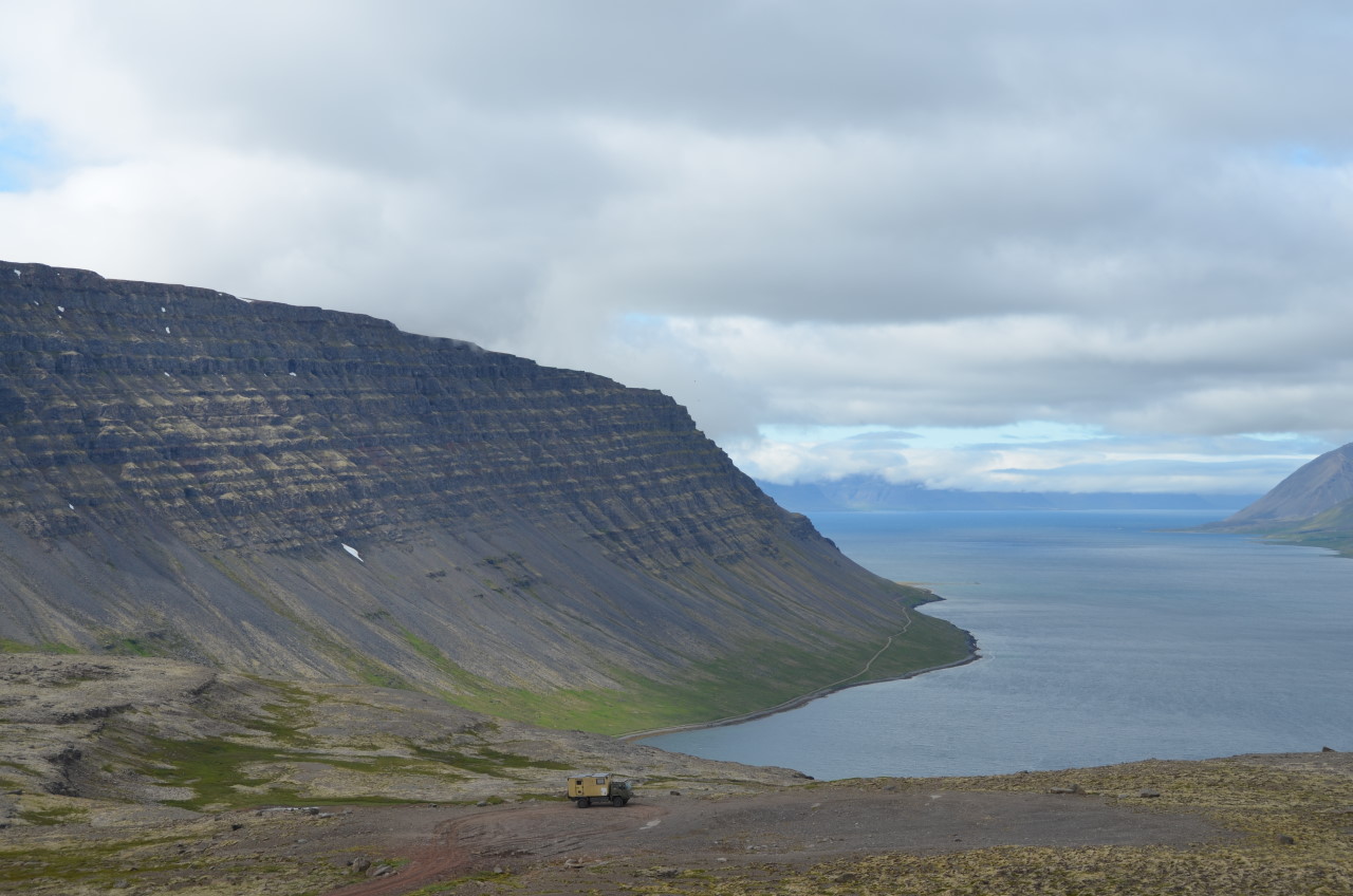 In den Westfjorden ist es ruhig. Sehr ruhig. Es gibt ein paar touristische Hotspots wie Isafjördur oder die heissen Quellen, wo etwas mehr los ist. Ansonsten verläuft es sich und selbst im Sommer ist auf den Campingplätzen als abendlicher Brennpunkt der Touristen ist nur mässig was los. Überhaupt fühlen sich die Pisten hier wie „offroad“ an. Island erlaubt einen erstaunlich hohen Freiheitsgrad. Das Land und die Berge sind mit jeder Menge gerade so zu erkennenden Fahrspuren durchzogen, die jeden 4×4 Fahrer vor Herausforderungen stellen. Dort kann man ungestraft herumkurven und fällt zwischen aufgerüsteten Superjeeps sowieso nicht auf.