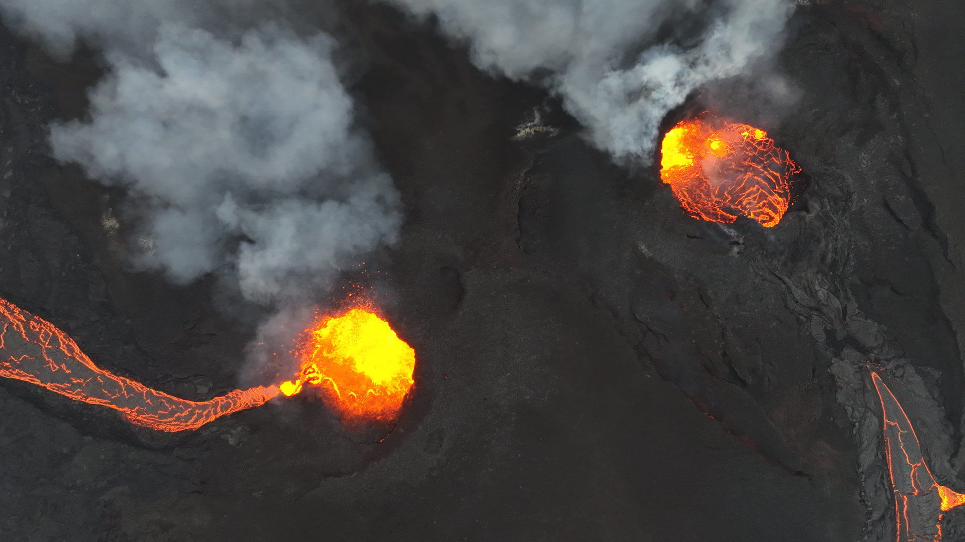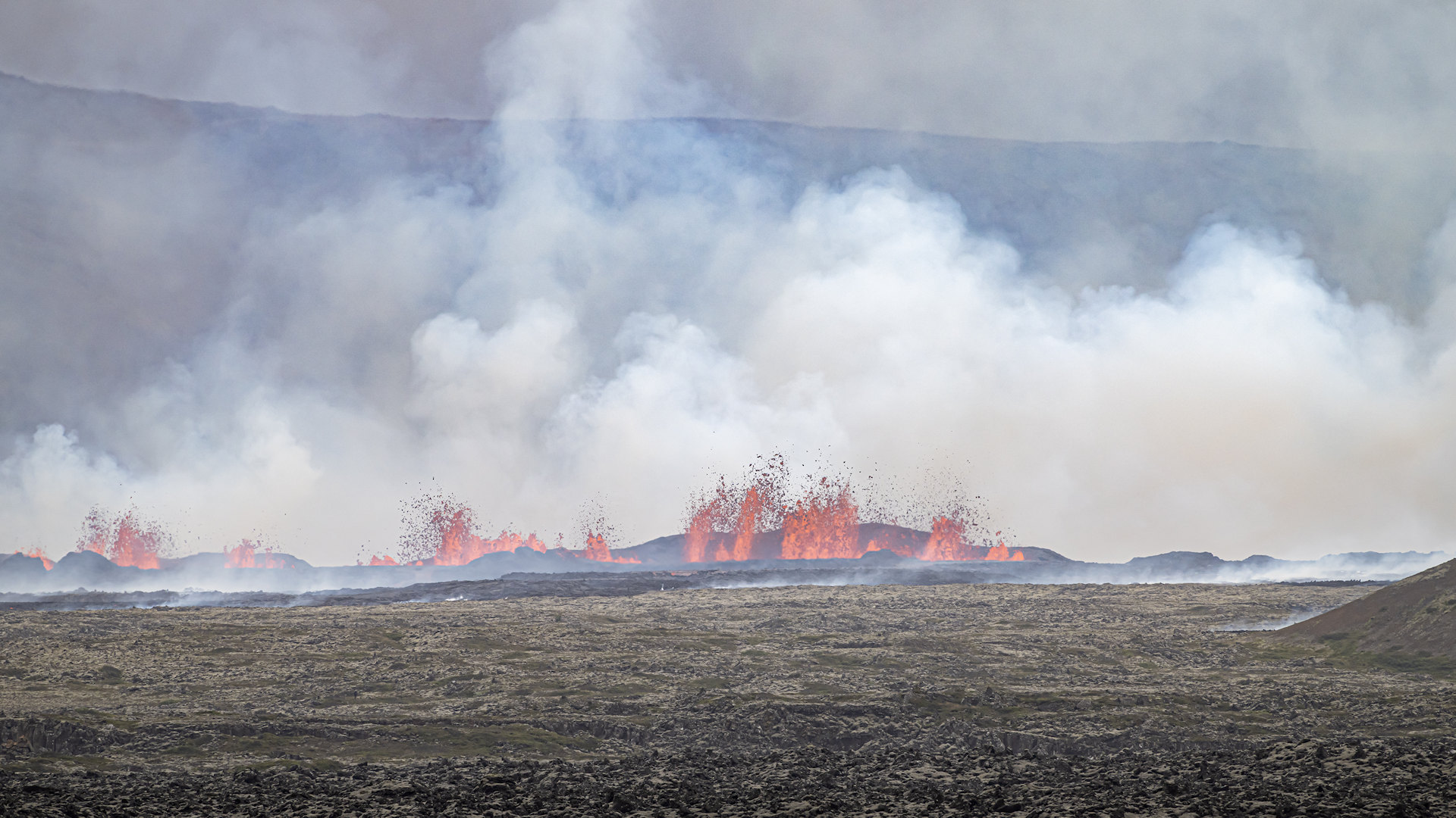 In den ersten Stunden ist eine 4km lange Vulkanspalte aufgerissen, die sich rasch nach Norden verbreitert hat. Diese zweite, nördliche Spalte hat dann die gesamte Aktivität übernommen. Hier bei Tageslicht von Gylfi fotografiert. (Bildrechte Gylfi Gylfason youtube.com/@JustIcelandic)Unterwegs mit Gylfi und seinem treuen, oft reparierten Landcruiser. In einsamer Vulkanlandschaft. Am ersten Tag hatte der Ausbruch noch die Form der Vulkanspalte. Typisch ist, dass sich die vulkanische Aktivität später auf zwei und dann einen Krater reduziert. (Bildrechte Gylfi Gylfason)