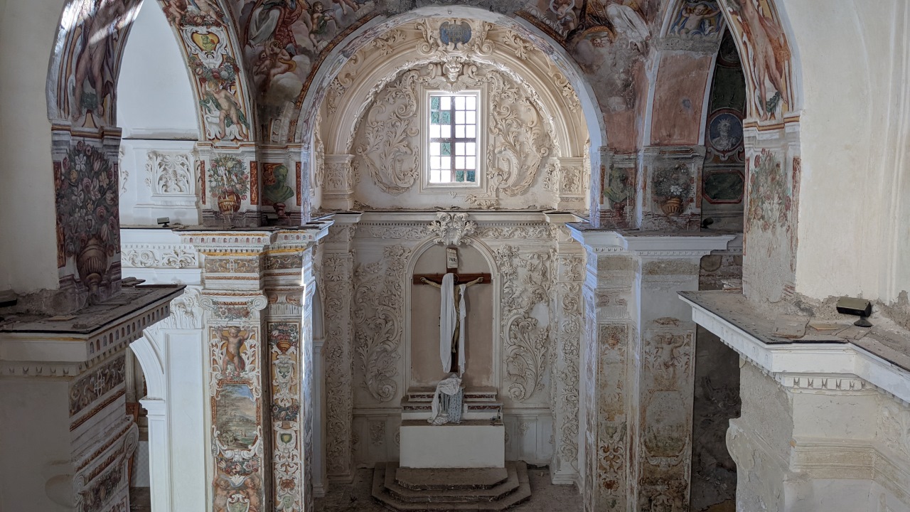 Das nicht minder verschlafene Canneto, ich stehe etwas abseits auf einem kleinen Sackgassen Parkplatz. Morgens wird man entweder vom rauschen der Wellen geweckt oder von knatternden Ape Motorrollern !Ein bisschen „Lost Place“ geht immer ! Die ungenutzte S. Maria delle Grazie Kirche in Lipari. Jesus Christus ist mit einem Laken verhüllt, Fensterscheiben sind kaputt und überall liegt Staub. Ein Detail aus dem obigen Bild. Die Kirche besitzt herrliche Wandmalereien und Stuck Arbeiten. Durch das Dach tropft jedoch das Wasser und eine Erhaltung oder Renovierung ist ungewiss. Die Kirche steht leer und ist nicht zugänglich.Landschaftlich ist Lipari wunderschön. Die Insel präsentiert sich im Januar grün und mit vielen Frühlingsblumen wie dem grüngelben „nickenden Hahnenklee“, der zusammen mit den Kaktusfeigen das Landschaftsbild prägt. An vielen Tagen bin ich einfach nur so rumgewandert. Hier war ich in der Nähe der ehemaligen Kaolin Abbaustelle unterwegs. Die aufgegebene Pumex Bimsstein Fabrik, der Abbau wurde um 2007 herum eingestellt. In der Fabrik kann man herumstrolchen, ich hab dem Lost Place einen eigenen Blog Beitrag gewidmet. Der Stellplatz am Hafen ist ideal für grosse Fahrzeuge und insgesamt unkompliziert, daher auch mitten in der Nacht, gut zu erreichen. Bims, was aus aufgeschäumter Lava besteht ist so porig, dass es im Wasser schwimmt. Bimsstein aus Lipari ist fast schneeweiss ! Ein DAF T244, der sich oberhalb von einem kleinen Fussweg duckt. Mit so einem Fahrzeug unterwegs zu sein war auf Lipari erstaunlich gut zu machen ! Da hatte ich an das enge Menorca noch ganz andere Erinnerungen. Belvedere Quattrocchi. Dort oben ist ein Aussichtspunkt der einen phänomenalen Überblick bietet. Den super schrägen Parkplatz hab ich sogar zur Übernachtung genutzt. Mit etwas Kraxelei gelangt man runter zum Strand, der aber wie fast überall auf Lipari aus Kieselsteinen besteht. Ganz hinten ist die Insel Vulkano. Dem Krater entströmen Schwefelgase.