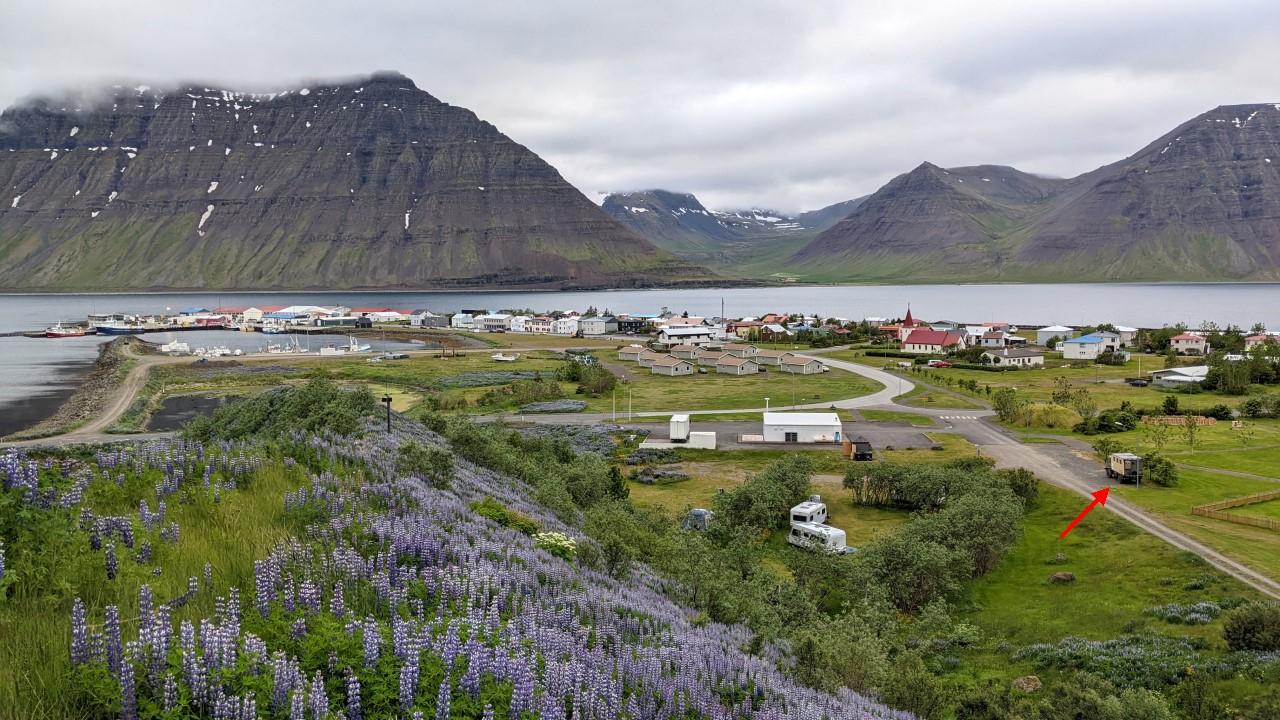 Augenscheinlich eine Idylle, aber Flateyri hat auch ein dunkles Kapitel. 1995 wurde bei einem Lawinenabgang ein grosser Teil des Dorfes im Schnee verschüttet, es gab 20 Tote. Viel für ein so kleines Dorf. In der Nähe der Kirche erinnert ein Gedenkstein daran. Was oben auf dem Fotos wie ein mit Lupinen bewachsener Berg aussieht, ist ein künstlich angelegter Wall, der solch eine Katastrophe zukünftig verhindern soll.