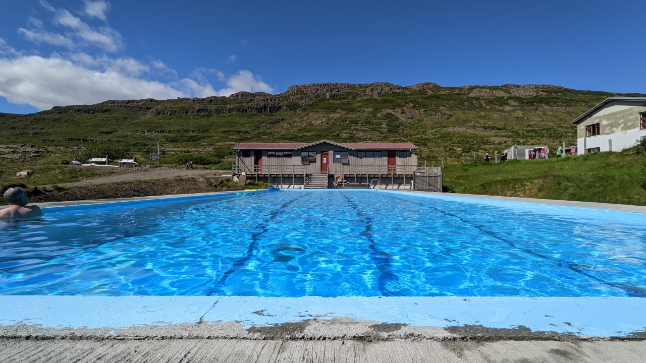 In Djupavik steht eine alte, aufgegebene Heringsfabrik, die gerade renoviert wird. Die Führung durch die Hallen ist sehr lohnend ! Das Potential, lost place Fotos zu machen ist umwerfend und die Anlage, in der man herumklettert ist riesig. Vor rund 85 Jahren wurde hier vor allem Fischmehl fabriziert, ab 1954 stand die Anlage leer. Um 10:00h sind meist Führungen, zusätzlich am Nachmittag. Dort in Djupavik ist auch ein Hotel / Restaurant, wer es komfortabel mag. Auf dem Fabrikgelände oder dem Pier zwischen diversem Schrott campen scheint kein Problem zu sein, so hab ich unbehelligt vor einer aufgegebenen kleinen Tankstelle übernachtet. Einer der Diesel Generatoren. Der Museumsführer meint, diese Technik wäre damals aus Deutschland geholt worden. Motoren dieses Typs einer Kieler Firma sind auch in den U-Booten der Deutschen aus dem zweiten Weltkrieg verbaut worden, seiner Aussage nach. Verbrennungsofen. Es ist aus heutiger Sicht völlig unbegreiflich, wie solch tonnenschweres Gerät hier her transportiert und aufgebaut wurde. Die Fabrik wurde damals im leeren Fjord errichtet. Es gab keinerlei Strasse irgendwohin. Jedes Teil, jede noch so kleine Schraube musste hier her transportiert werden. Eine Logistik, die ohne Computer im Jahr 2022 unvorstellbar ist. Einer der Fischtanks ist von Künstlern etwas umfunktioniert worden. Die Akustik ist hier drinnen sensationell. Ganz am Ende lockt das frisch renovierte Krossnesslaug Bad. 1000 ISK Eintritt, die sich lohnen. Mit Pool und Hotpot direkt am Meer. Unten in dem Schwimmbecken hat man den Eindruck, direkt im Meer zu schwimmen.