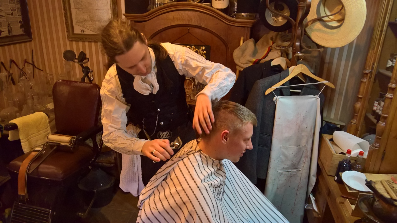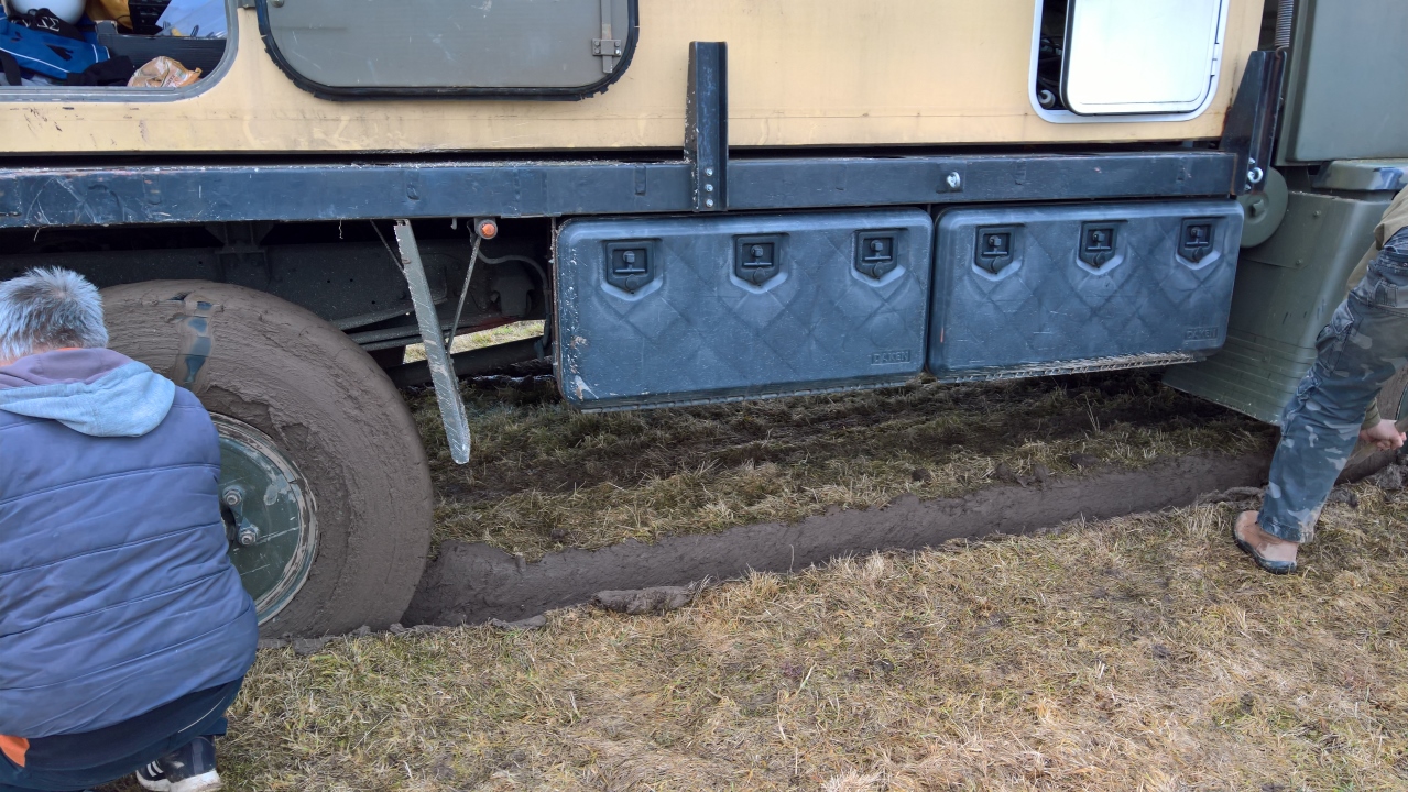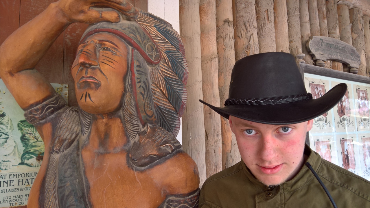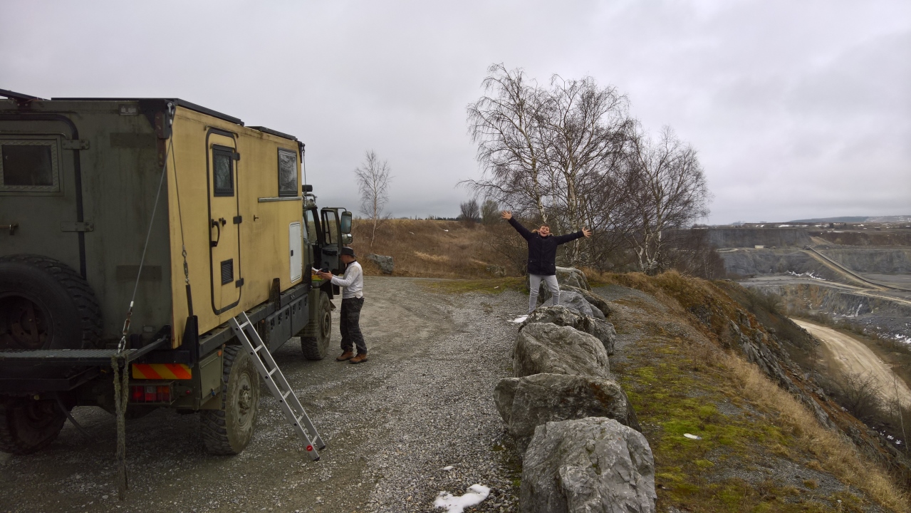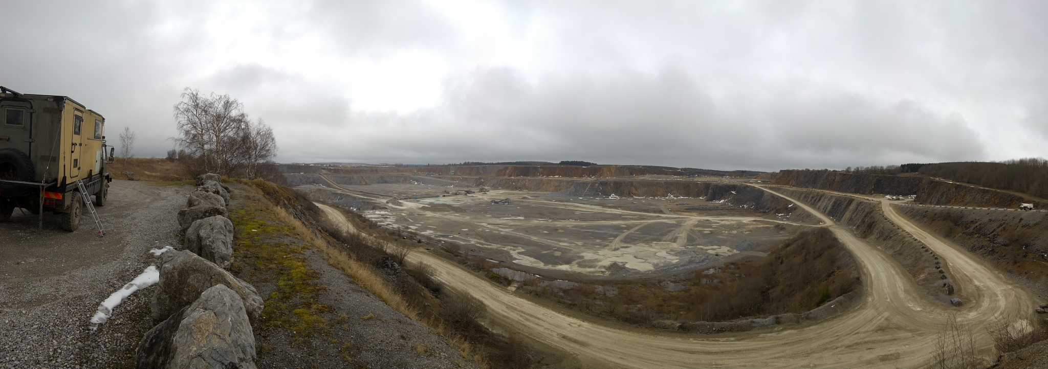 Peer im „Hotel“, hab ich vor allem wegen dem Glasleuchter und der Perspektive aufgenommen.Niels beim Barbier. Ein Barbier kann im Gegensatz zum Frisör nur einen ganz kurzen Haarschnitt machen. Aber das war exakt das, was Niels wollte. Alles im Stil von 1840.Peer war eine Runde reiten. Ein muss beim Besuch in der WesternstadtKurze Haare und damit ein neuer Hut für Niels. Ganz so arg wollte ich ihn mit seinen sehr kurzen Haaren nicht frieren lassen.Roundup in Pullman City auf der Hauptstrasse.Hier auf dem Acker haben wir uns dann leider ein klein wenig festgefahren. Der angepeilte Mini Campingplatz hatte zu, dafür hat uns spontan ein Bauer mit Landrover eingeladen, bei sich auf dem Hof zu übernachten. Er mit dem Landrover vorweg, wir mit dem DAF munter hinterher. Auf der Wiese dort war aber gerade der Schnee geschmolzen. Im satten, lehmigen Boden kam der DAF jedoch nicht weit.Der Bauer hatte den Feldweg rechts wegen der Schneewehen gemieden, da wäre er mit seinem Landrover nämlich hängen geblieben. Später, als wir den LKW frei hatten, bin ich dann wie es von Anfang an richtig gewesen wäre über den Feldweg gefahren. Durch den Schnee ist der DAF im Gegensatz zum Landrover einfach so durch, den hat er einfach weggedrückt.Unser Gewicht war mit 7 Tonnen für die mit Wasser vollgesogene Wiese dann aber zu hoch und Traktion hatten die Reifen auch nicht mehr.War aber kein Problem. Untersetzung und Allrad rein, etwas Luft runter, nach hinten etwas wegschaufeln. Rückwärts raus fährt er dann eigentlich immer. Hangabwärts sowieso. Ich beim Luft ablassen.Am nächsten Morgen: Picknick am Steinbruch.Einerseits beeindruckend, andererseits hinterlässt der Mensch eine Mond Landschaft mit komplett geändertem Grundwasser. Dann lieber Tourismus, finde ich.