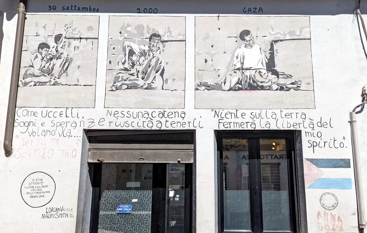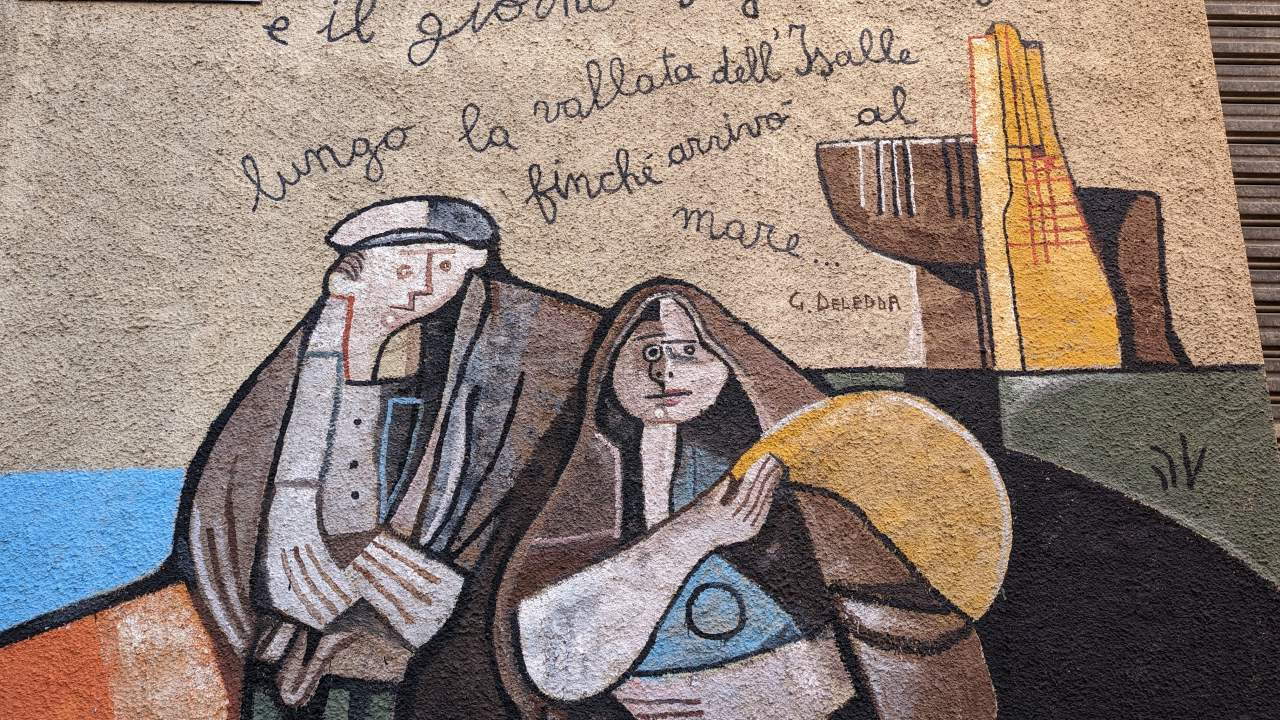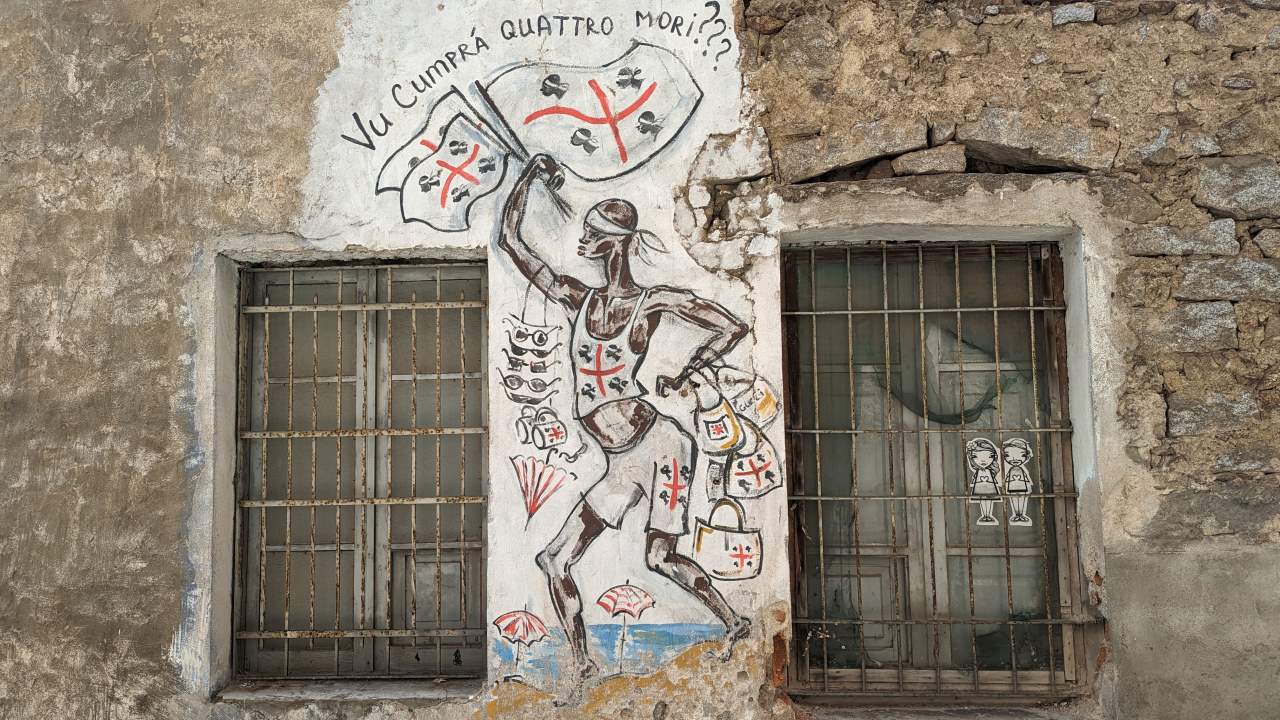 Einfach nur schräg ! In der Corso Republica, in der Nähe der Banco de SardegnaEin weiteres Beispiel für die Stilrichtung des Kubismus aus der Freiluftgalerie Orgosolo. An der Corso Repubblica.Diese Bilder sind damals um die Welt gegangen: der 30.September 2000 im israelisch besetzten Gaza Streifen. Ein Vater gerät mit seinem 12 jährigen Sohn ins Schussfeld israelischer Soldaten und versucht verzweifelt, hinter einer Beton Säule Deckung zu finden. Sein Sohn stirbt im Kugelhagel. Der Schütze wird nie ermittelt. Ebenfalls an der An der Corso Repubblica zu finden. Der industriell geprägte Norden Italiens – und das ländliche Sardinien ? Viele Bauern mussten dem Militär weichen, um Platz für Übungsplätze zu machen. Bis heute sind grosse Teile der Insel militärisches Sperrgebiet. Schönes Detail einer Wandmalerei, an der Corso RepubblicaInteressanterweise beziehen die Malereien selten den Untergrund mit ein. Im Gegensatz zu Graffities von Banksy spielen die Bilder nie mit dem Untergrund. Oder beziehen Gitterfenster, Löcher, Fensterbänke oder herausragende Strukturen in die Bilder ein. Alle Malereien sind immer auf einer Fläche wie einer Leinwand. „Wollen sie die vier Mohren kaufen ?“ Eine Anspielung auf die Flagge Sardiniens, die vier schwarzafrikanische Köpfe zeigt. Afrikanische Einwanderer haben in Sardinien keinen guten Stand. Oft finden sie nur im Sommer als Souvenir Verkäufer Arbeit. Mohr ist eine veraltete Bezeichnung für einen Äquatorianer. An der Corso Repubblica Richtung Via Docana. Okay sorry, da ist jetzt leider keine Wandmalerei zu sehen. Aber ich fand den Kontrast aus Blau, Orange und Weiss einfach cool und teile es daher Mal. Jose „Pepe“ Mujica, von 2010 bis 2015 pragmatischer Präsident Uruguays. Platz in der Via Antonio Gramsci Übersetzung etwa so: „Wir haben Geld, um Wasser auf anderen Planeten zu suchen. Gibt es nicht bereits Formen von intelligentem Leben auf der Erde ?“ Gesehen in der Via Leguria. Ein Portrait von Antonio Gramsci, einem marxistischen Philosophen und Gründungsmitglied der kommunistischen Partei Italiens. Aus einem Brief an seine Mutter: ich bin ein politischer Gefangener und werde ein politisch Verurteilter sein. In der Via Antonio Gramsci fotografiert. Eines der letzten Wandbilder aus dem Jahr 2020. Bilder, die aktuelle Themen wie Corona oder die Ukraine thematisieren gibt es noch nicht. Eine sinnvolle Übersetzung ist mir leider nicht gelungen und Google Lens hat sich ebenfalls die Zähne ausgebissen. Trotzdem schön anzusehen … Jesus, als Flüchtling. Ecke Via Cavour / Via MazziniOft wird das Dorfleben der Arbeiter und Bauern auf den Bildern thematisiert. Der 11 September (9-11) 1973. Der demokratisch gewählte Präsident Chiles Salvador Allende wird durch einen Putsch gestürzt und begeht Suizid. Für die Planung und die Finanzierung sind die USA / CIA zuständig. Es folgt eine bis 1990 andauernde Militär Diktatur unter Augusto Pinochet. Die Morde gehen in die Tausende, ebenso die der aus dem Land geflohenen Menschen. Murales in der Via Locoe, oberhalb der Poste Italiane.