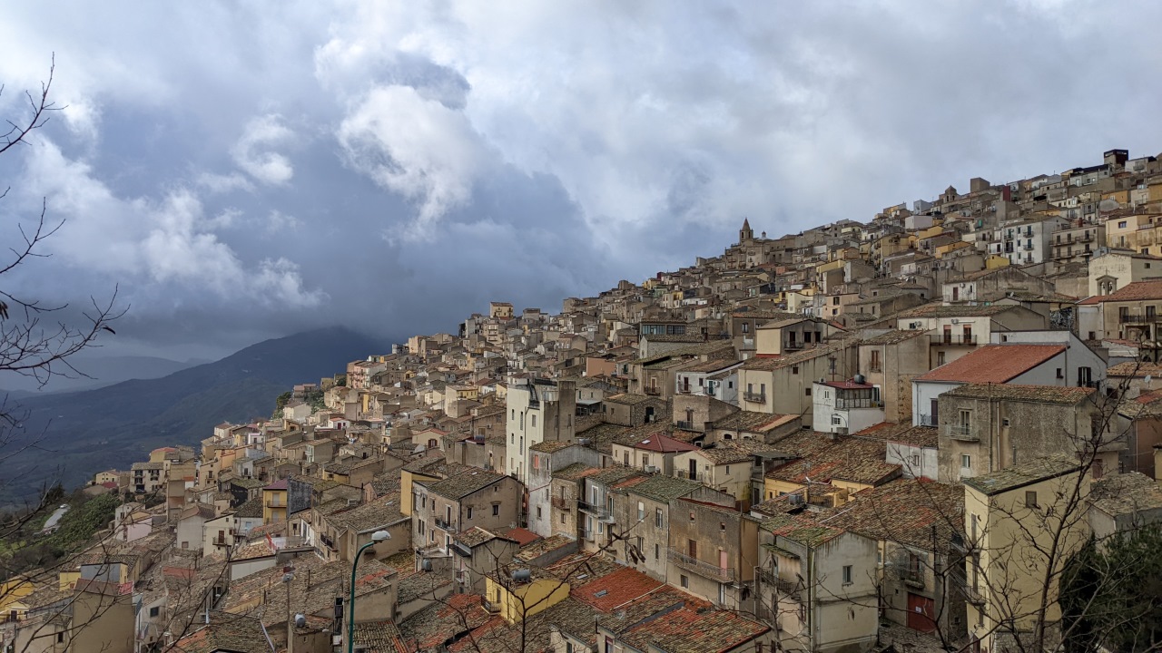 Blick über Prizzi, welches sich an einen Berg schmiegt. Den Truck hab ich selbstverständlich unten im Tal gelassen.