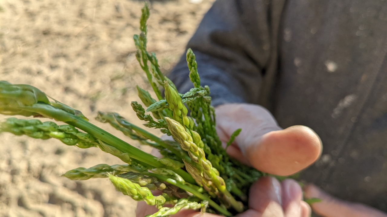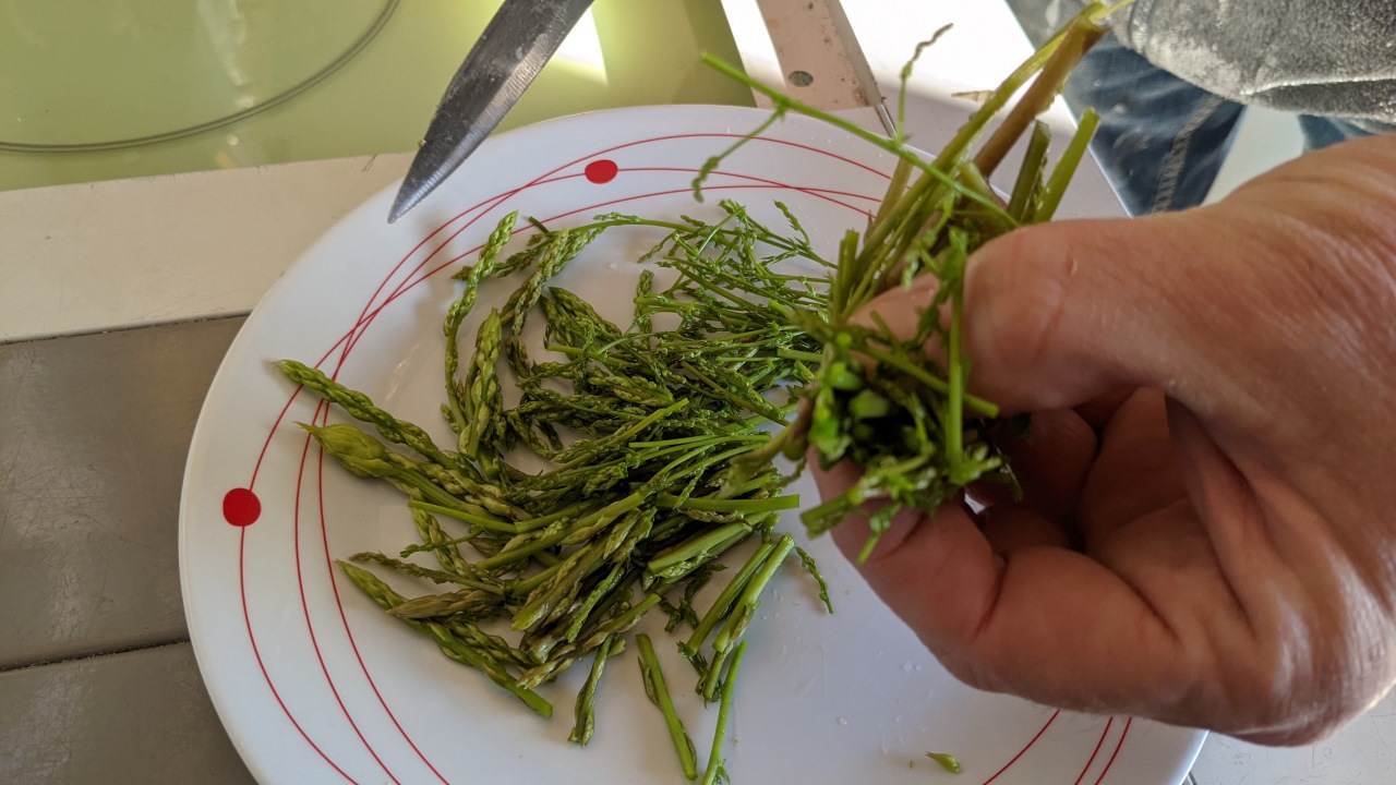 Aus dem wilden Spargel hat er mir im Truck einen Salat zubereitet. Nur mit Olivenöl und Salz. Schmeckte prima, wilder Spargel ist eine typische Kochzutat in Sizilien !