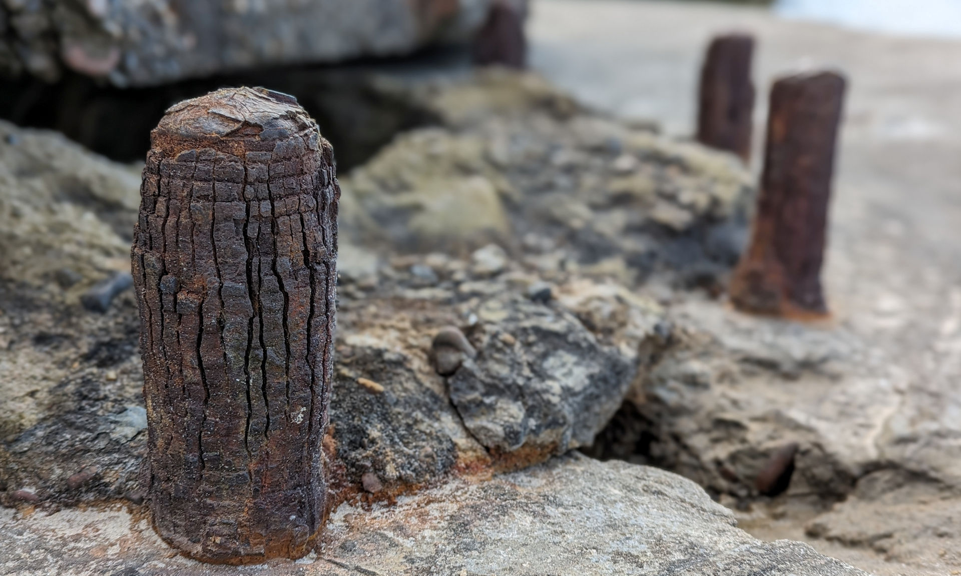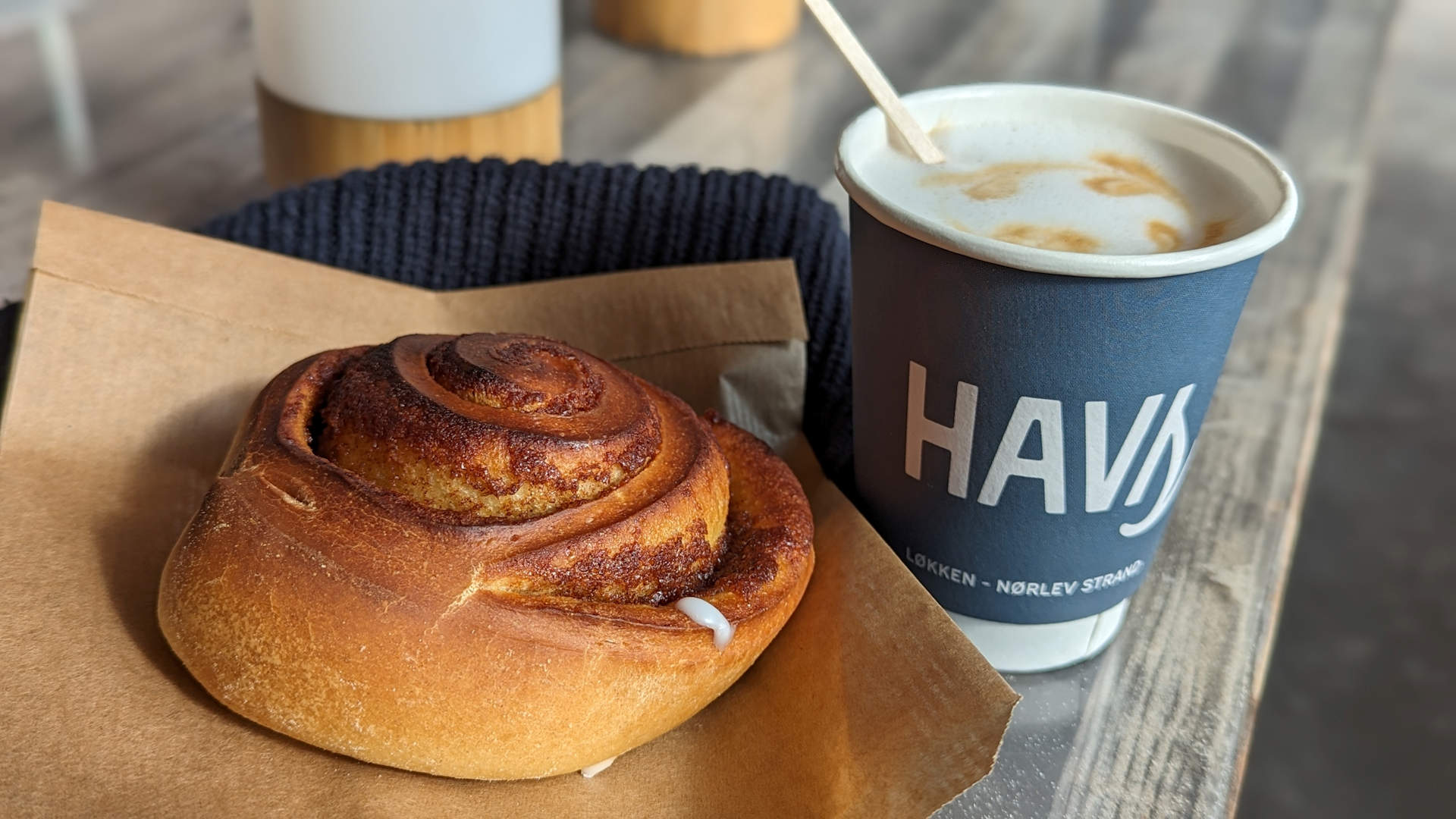 Einst standen die Bunker in den Dünen. Aber jahrelange Erosion der Küste hat die Bunker abrutschen und halb in der Nordsee versinken lassen.Es liegt auf der Hand, dass diese Relikte des zweiten Weltkriegs Besucher magisch anziehen. Um Fotos zu machen und natürlich um darin herum zu klettern. Insbesondere Kindern macht das einen mords Spass. Bei diesem Bunker erkennt man noch die Schiess Scharte. Hinter der quadratischen Aushöhlung war ein Maschinengewehr positioniert, um diesen Bereich zu decken.Dieser Bunker liegt seitlich auf dem Strand. Alle Bunker sind im Laufe der Jahre aus den Dünen abgerutscht, nicht alle sind in ihrer ursprünglichen Lage am Strand gelandet. Eine weitere Luftaufnahme von einigen Bunkern, die während der Flut von Wellen umspült werden. Einige der Bunker sind bedrohliche Kolosse, drei Stockwerke hoch und unzerstörbar. Es lässt sich nicht bestreiten, dass diese Betonklötze eine weitere Erosion der Küste zumindest verzögern. Hier verneigen sich zwei Bunker. Ein bisschen , so als ob sie in einem Gespräch vertieft wären. Ein Riss im BetonInsgesamt bestand die Küstenbatterie Lökken aus 36 Bunkern unterschiedlicher Bauformen. Einige trugen ein Geschütz mit einer Reichweit von bis zu 12 Kilometern, so wie dieser Bunker hier. Eine korrodierte Verschraubung von einem der Geschützbunker. Eigentlich wäre etwas bedrohlicheres Wetter besser gewesen, um die Bunker besser in Szene zu setzen. Aber das konnte ich mir nicht aussuchen. Die Bilder, von denen ich nur eine Auswahl zeigen kann sind an einem sonnigen, aber sehr kalten April Tag im Jahr 2024 entstanden. Kaffee & eine Zimtschnecke. In einem kleinen Hafencafe dort in der Nähe fotografiert, wo ich mich nach der Exkursion etwas aufgewärmt hab …