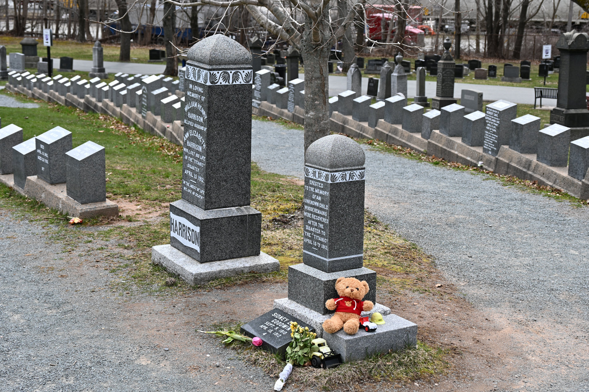 Erst im Jahr 2007 konnte durch einen DNA Abgleich ermittelt werden, dass hier der kleine Sidney Leslie Goodwin seine letzte Ruhestätte gefunden hat. Auf dem Grabstein steht: „Erected to the memory of an unknown child whose remains were recovered after the disaster to the „Titanic“ April 15th 1912“ – inzwischen ergänzt um den Namen des Kindes.
