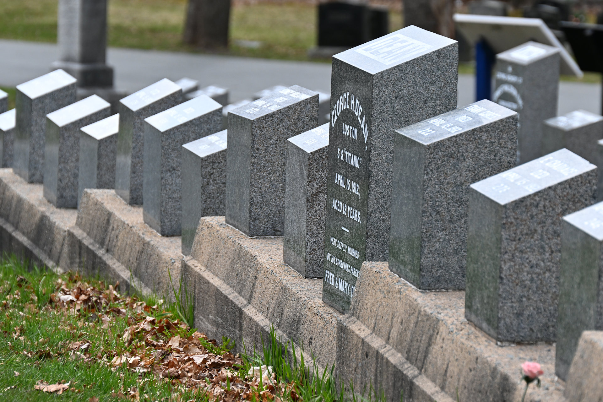 Halifax Nova Scotia im Nordosten Kanadas war im Jahr 1912 der nächst gelegene Hafen, um die Rettung der Opfer der Titanic Katastrophe zu koordinieren. Leichen, die aus dem Wasser geborgenen wurden kamen zuerst nach Halifax, teilweise gab es aber auch einfache Seebestattungen vor Ort. Viele der Opfer wurden später anonym in Halifax begraben, da es damals nicht üblich war Passagierlisten zu führen. So finden sich auf dem Friedhof viele Stelen, die lediglich eine Nummer tragen, jedoch keinen Namen.