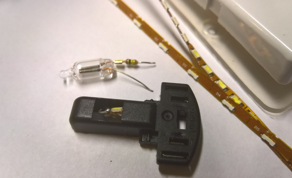 In so einem Schalter steckt eine Glimmlampe drin, die mit einem hohen Vorwiderstand direkt an 230 Volt Wechselspannung angeschlossen ist – sie bringt die kleine rote Anzeige zum leuchten.
