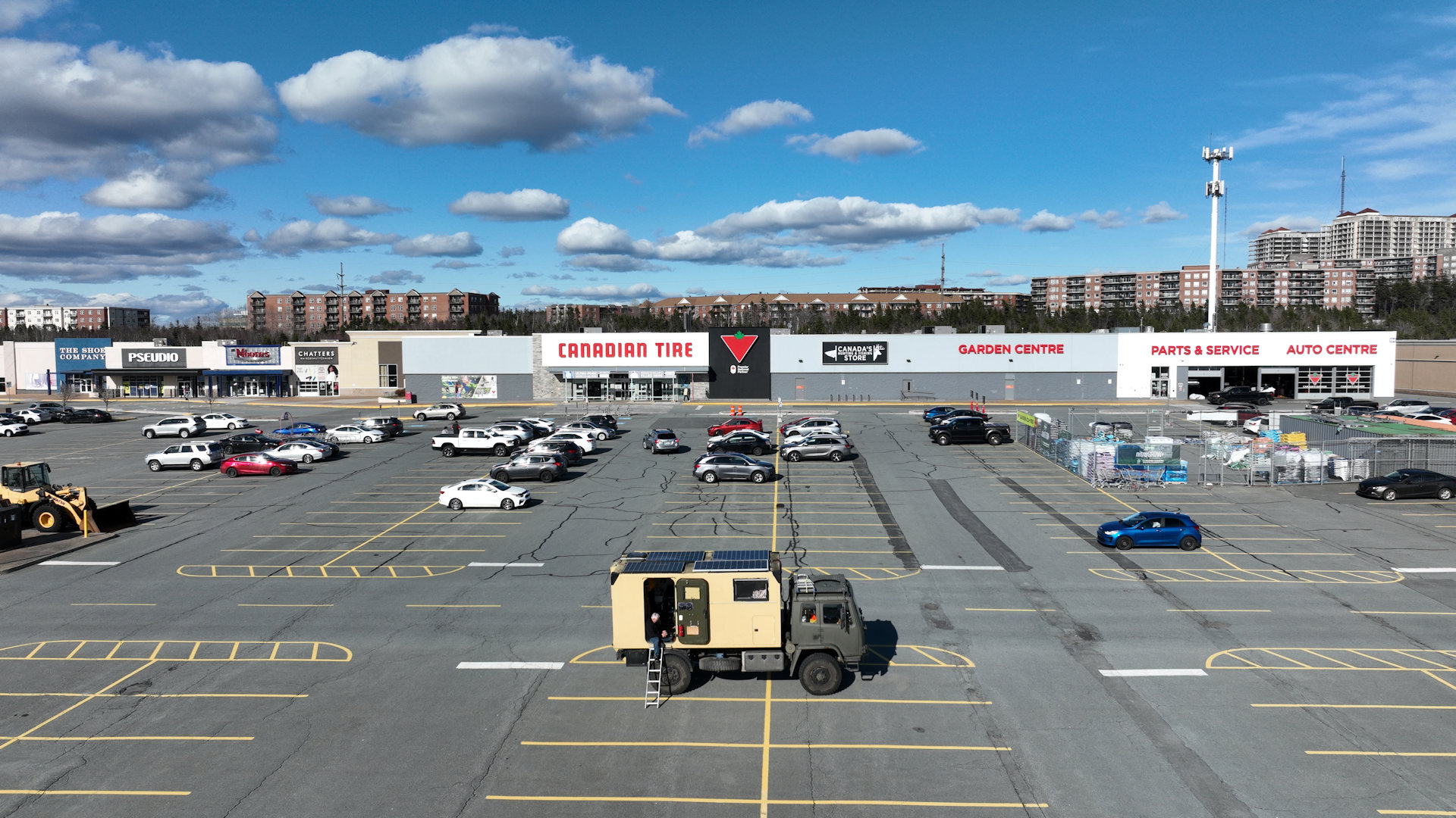 Parkplatz Camping bei bestem Wetter vor dem Canadian Tire in Halifax, einem sehr gut sortierten Baumarkt. Mit freien WLAN und allen Einkaufsmöglichkeiten. Um erst mal Vorräte aufzufüllen.Es hatte mich leider 5 Tage gekostet, den Truck aus dem Hafen raus zu bekommen. Die Agentin vor Ort hatte keinen Bock und alles lief eher schleppend. (Tipps & Bericht zur Einreise nach Halifax mit einem Camper oder LKW ist HIER)Der Containerhafen, im Nebel. Direkt dort beim Heliport gibt einen coolen Stellplatz direkt am Park.