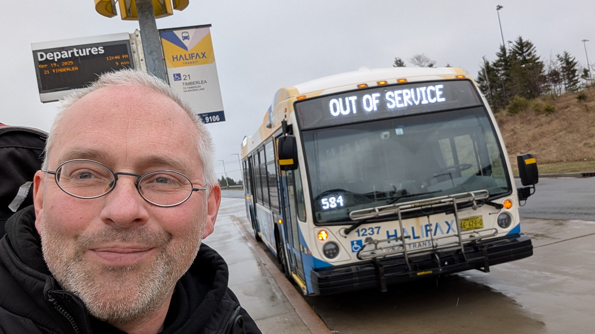 Unterwegs in Halifax, mit den zerbeulten Bussen von Halifax Transit. Die Fahrer sind allesamt wie die letzten Henker unterwegs, aber super nett & hilfsbereit. Gut festhalten empfiehlt sich jedoch, wenn der Bus mit 30° Neigung in die Parkbucht einschwenkt und hart abbremst.