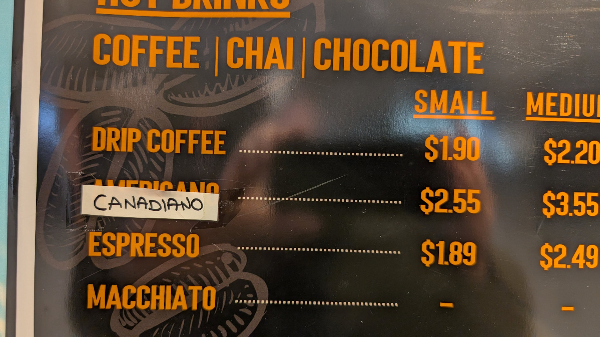 Kein Kaffee Americano mehr im Bistro ! Die Kanadier sind zur Zeit schlecht auf die Amerikaner zu sprechen.