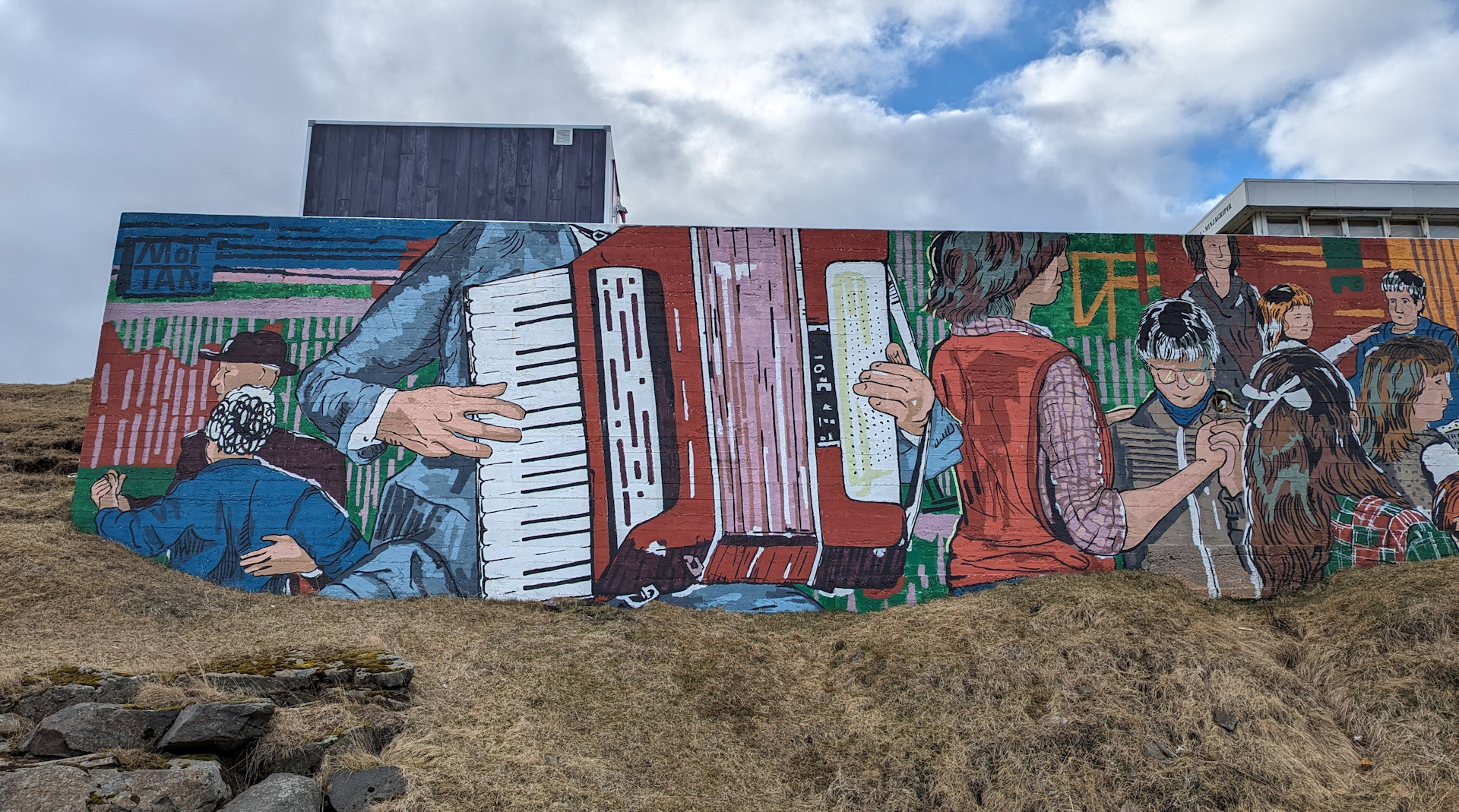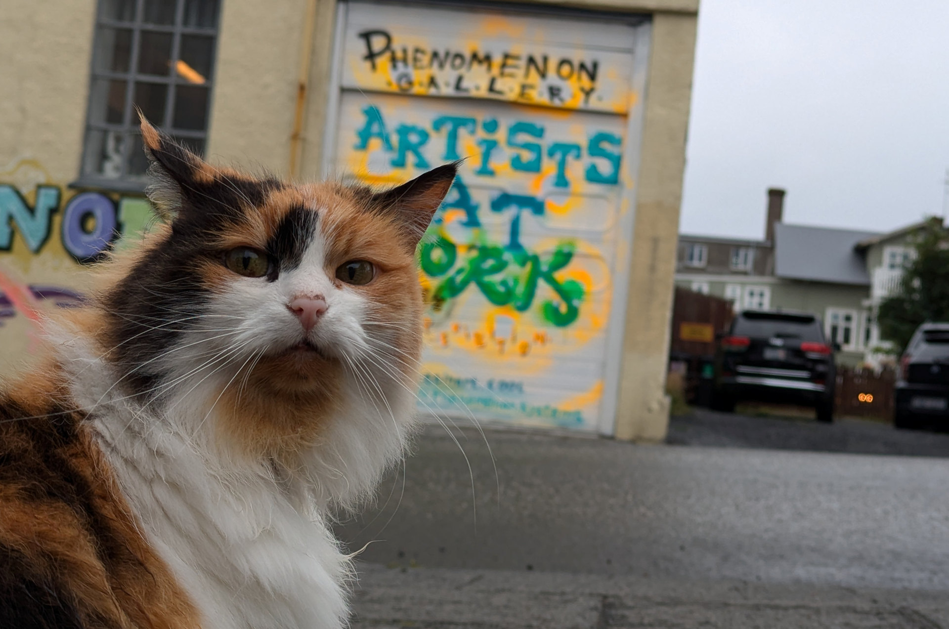In Djupivogur, Tanz und Musik. Schade, dass das Gras zu dem Zeitpunkt nicht grüner war, hätte gepasst. Viele Motive der Wandbilder sind in Island sachlich, gegenständlich, spiegeln den Alltag der Bewohner. So auch hier, wo ein moderner Fischer portraitiert wird. Und der vor nicht allzu langer Zeit gebaute Tunnel in Faskrudsfjördur.Ein Nachtmar … ? Bei der Arbeit fotografiert. Diese aufmerksame und zutrauliche, sehr nette isländische Katze sah aus, als wüsste sie ganz genau über alles Bescheid. Von der Vesturgata aus entdeckt man in Reykjavik sehr viele Wandmalereien. Und Studios / Galerien der Künstler ! Ebenfalls Reykjavik. Bei meinem Bildern hab ich lediglich auf gutes Wetter gewartet und versucht, einen Schattenwurf möglichst zu vermeiden. Später wurde die Perspektive etwas korrigiert und der Bildausschnitt angepasst. Format ist in diesem Blog möglichst stets 1920 x yyyy