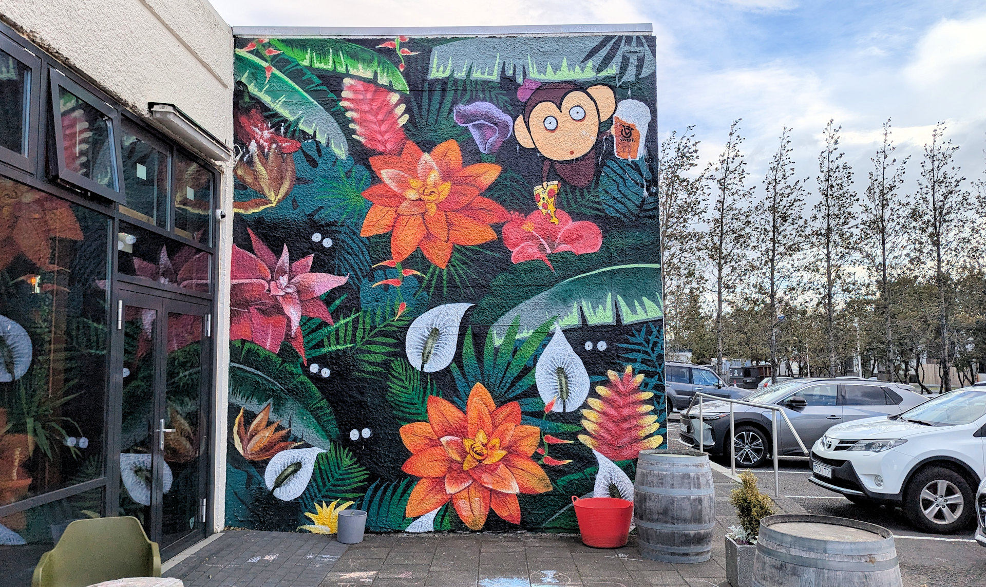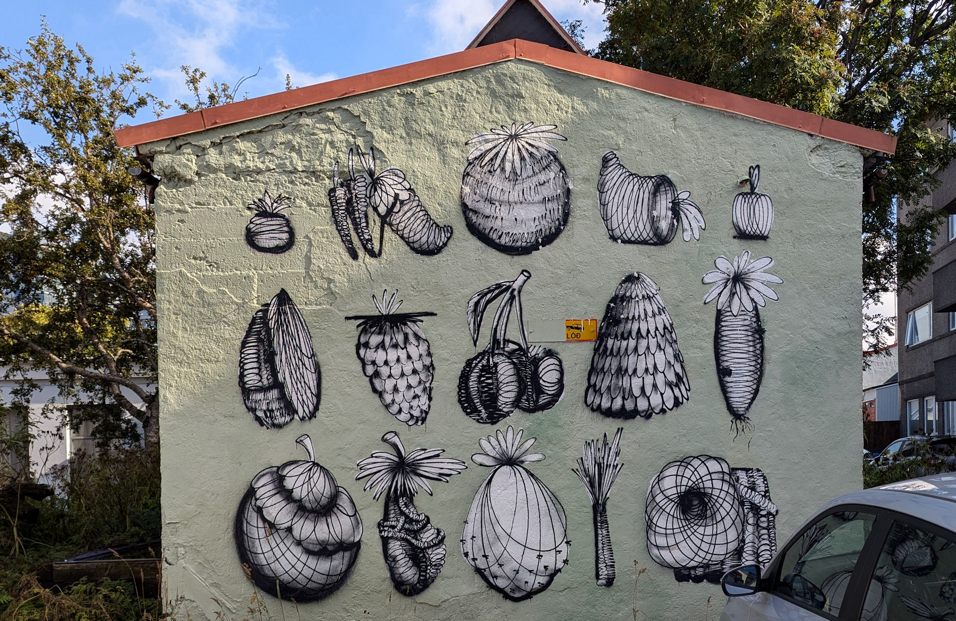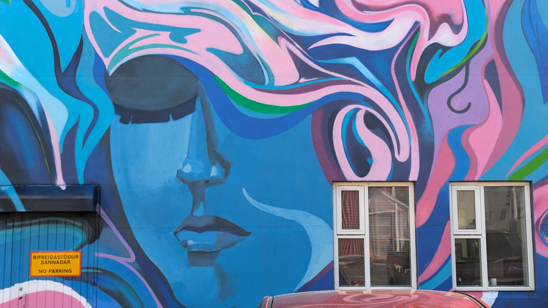 Man merkt den Isländern an, dass sie es gerne farbenfroh haben. Kein Wunder: lange Winter, dunkle und kalte Jahreszeit … Dort sind jedenfalls echte Künstler unterwegs, die leere Flächen mit tollen Wandmalereien versehen. Ein ziemlicher Kontrast zu Deutschland, wo es fast immer nur unschöne Schmierereien, massenhaft Aufkleber und Gekrakel sind.