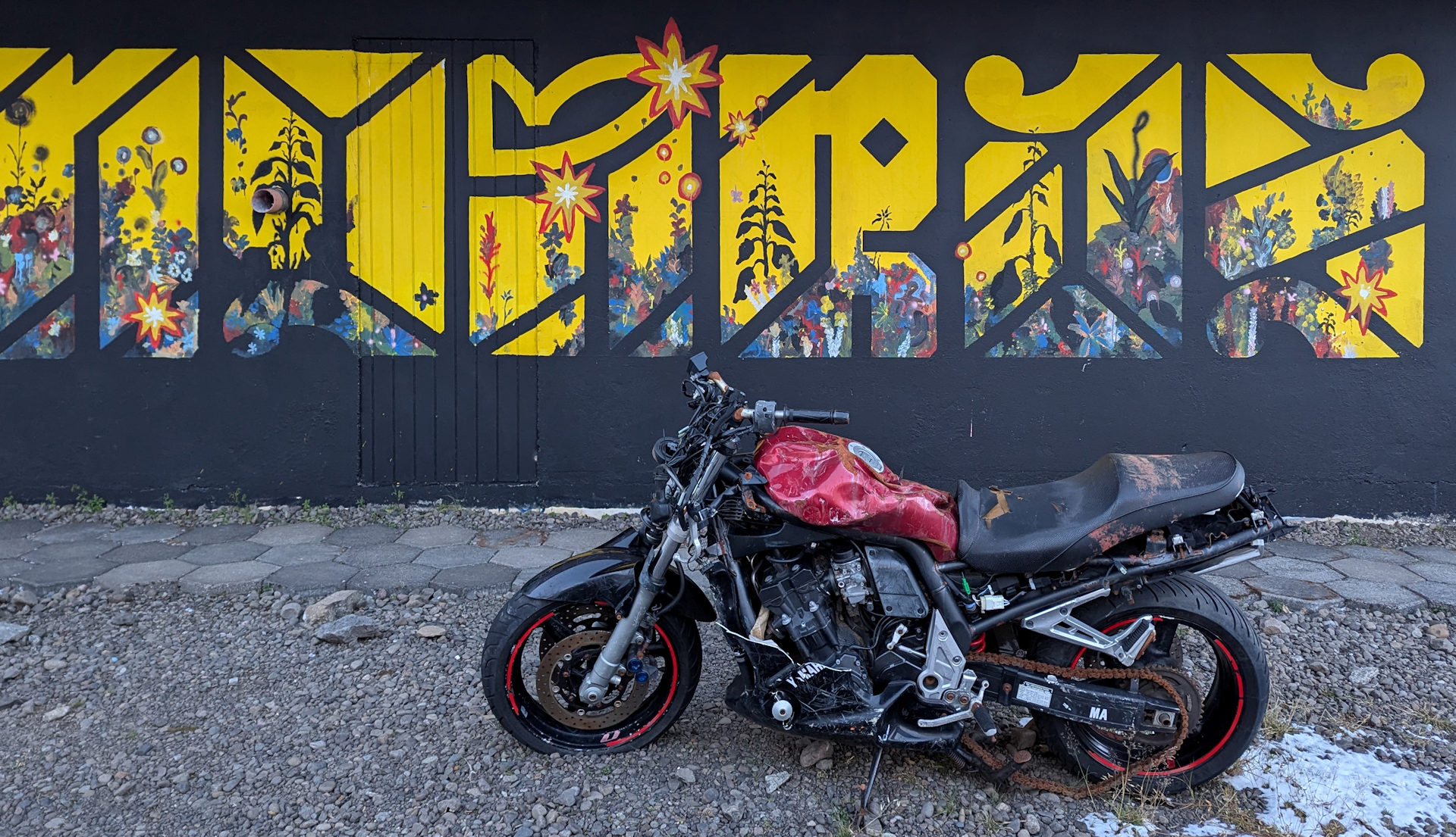 Last not least dieses Bild aus dem Fährhafen Seydisfjördur, kurz vor meiner Abreise fotografiert. Leider weiss ich nicht, was dem Motorrad passiert ist oder ob es eventuell Teil eines Kunstwerks ist. Oder Mahnmal. Oder einfach nur Zufall …